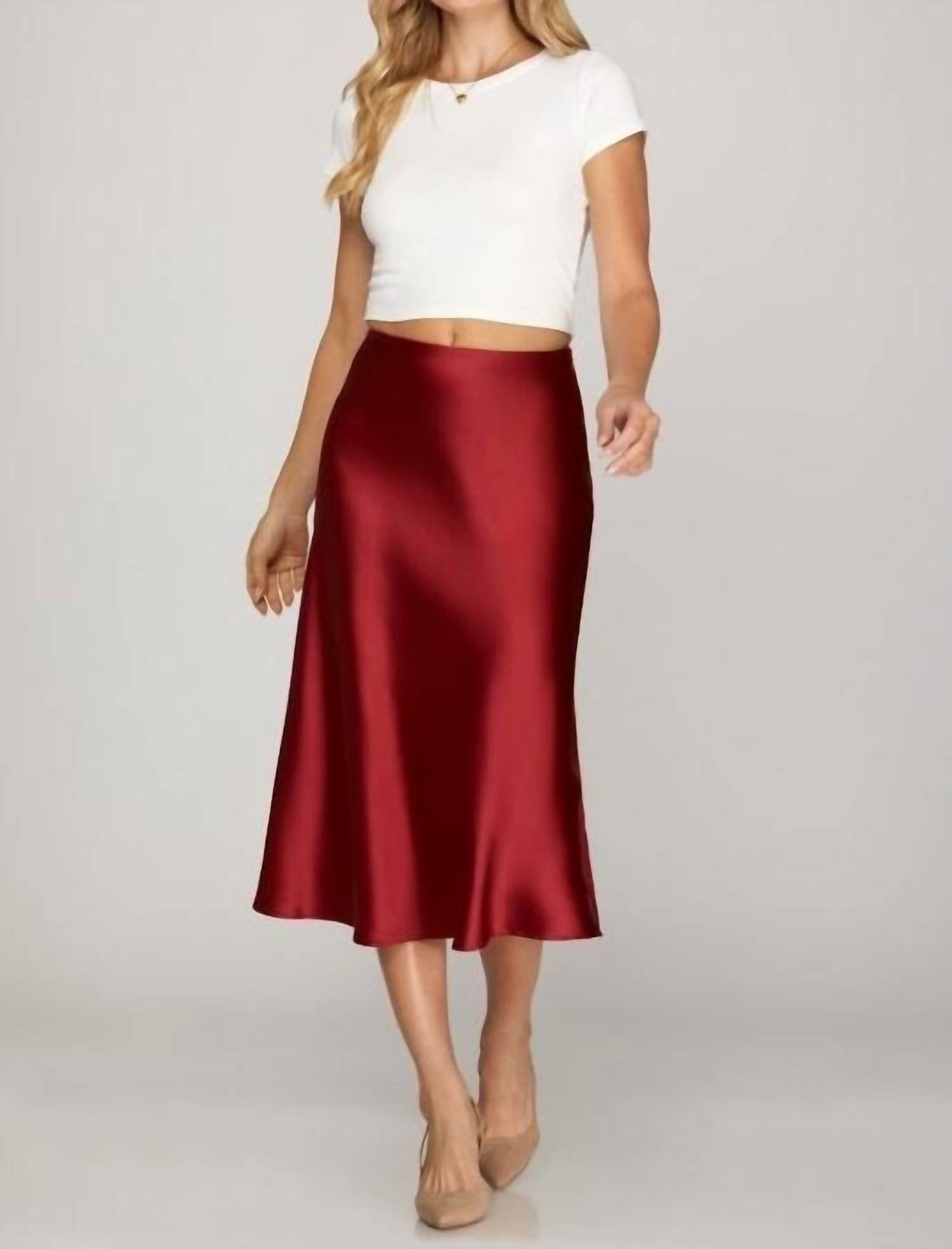 Tuck your favorite tee into this midi length skirt for an effortlessly cool look. Elevate your holiday party ensemble with the chic satin piece. Mid-length skirt combines a sleek silhouette with an elastic waistband for comfort and a zipper closure for a secure fit. Perfect for a spring occasion, embodies 90s fashion with a solid pattern that seamlessly complements any look. Ideal for Valentine's Day festivities, this women's midi skirt adds a touch of elegance and sophistication to your wardrobe.