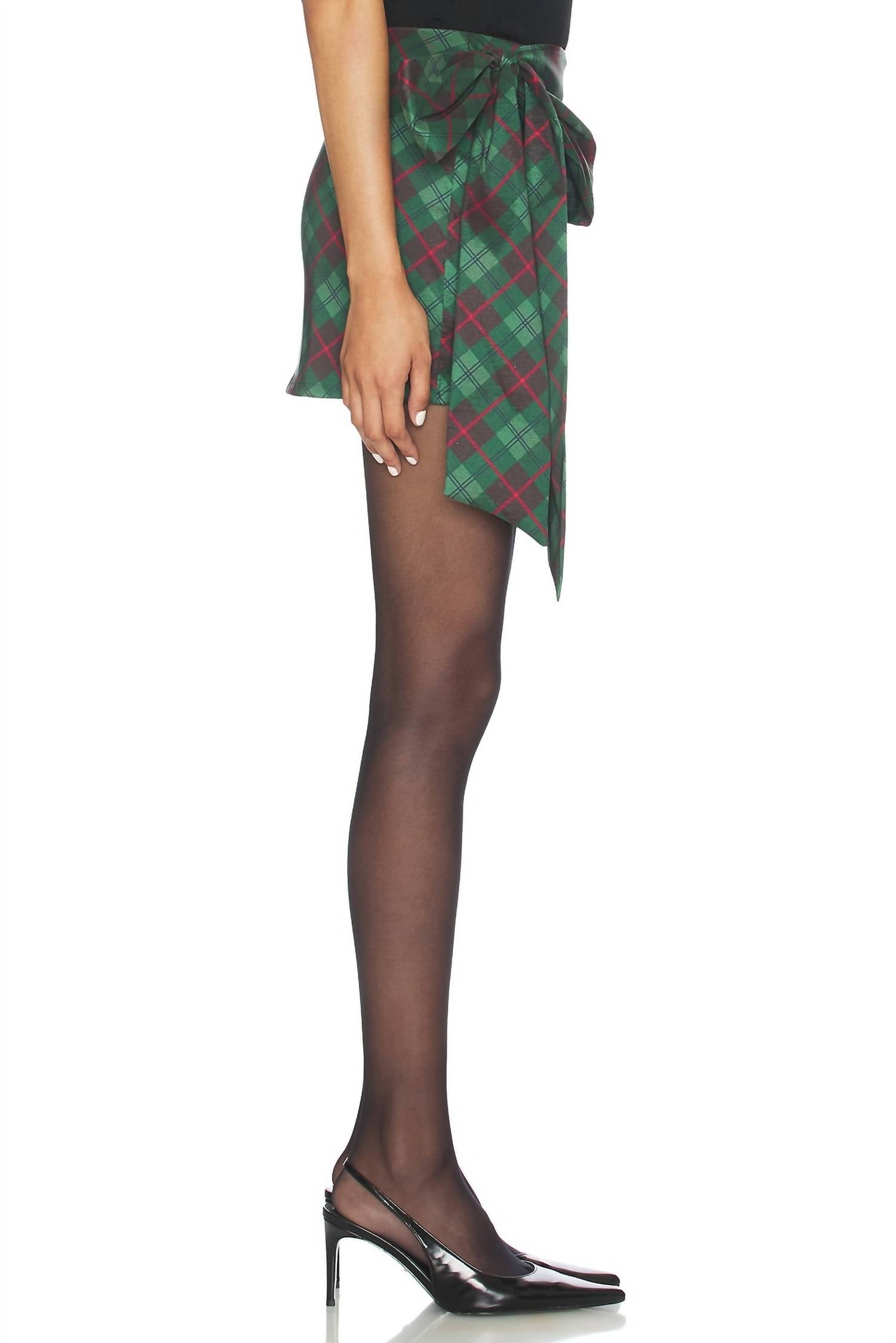 Tuck in your favorite tee for a more laid-back vibe. Meet the Iva Bow Skirt by Show Me Your Mumu, a charming addition to your holiday wardrobe in a Mistletoe Plaid mini design. Expertly crafted with a composition of 64% polyester, 32% polymide, and 4% elastane with a lining of 96% polyester and 4% spandex, this skirt offers both comfort and style. Made in the USA, it features a built-in shorts lining and a side zipper closure, complemented by a wrap tie bow embellishment, making it perfect for a Christmas party. Care for it with a simple machine wash in cold water.