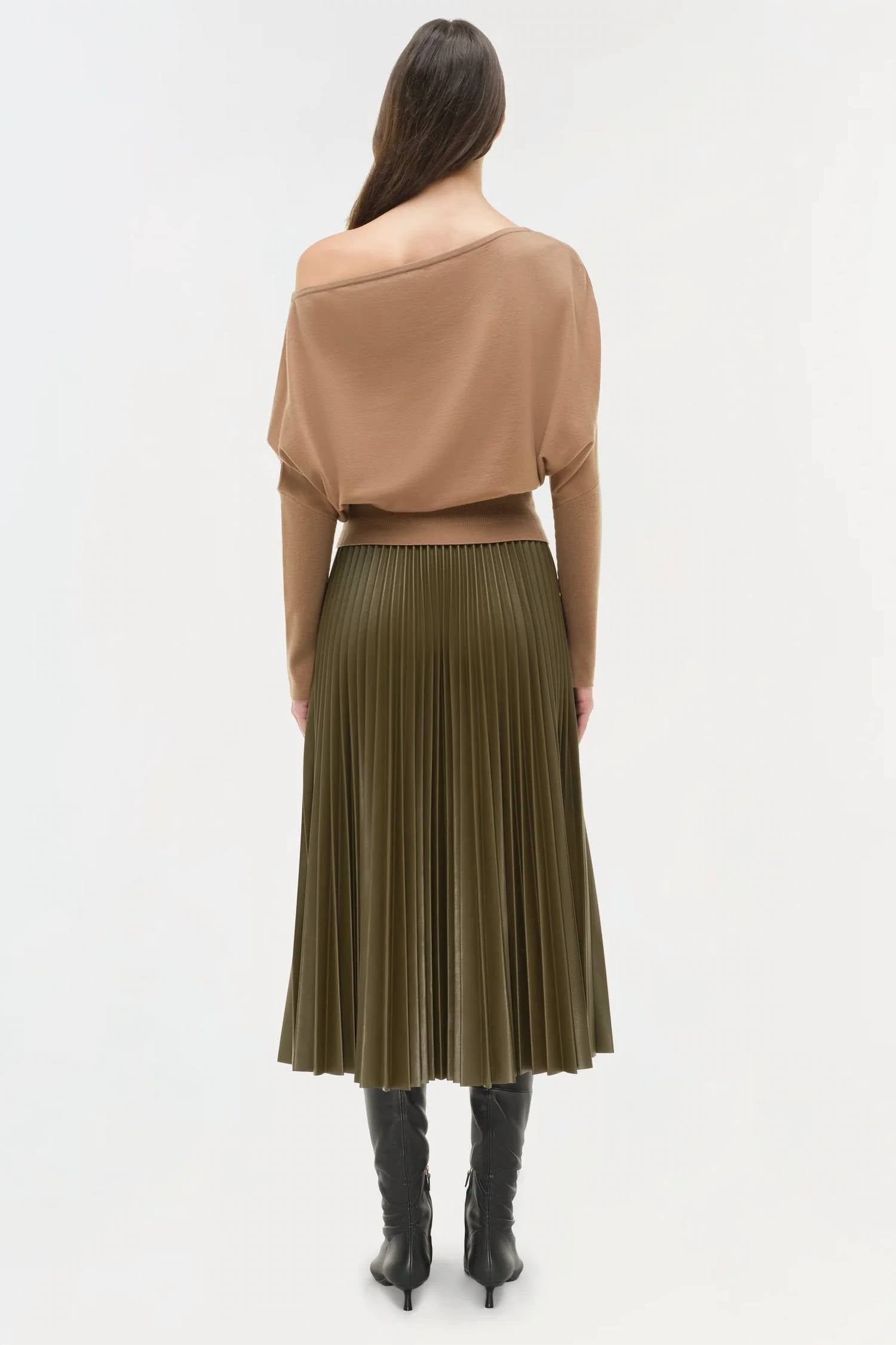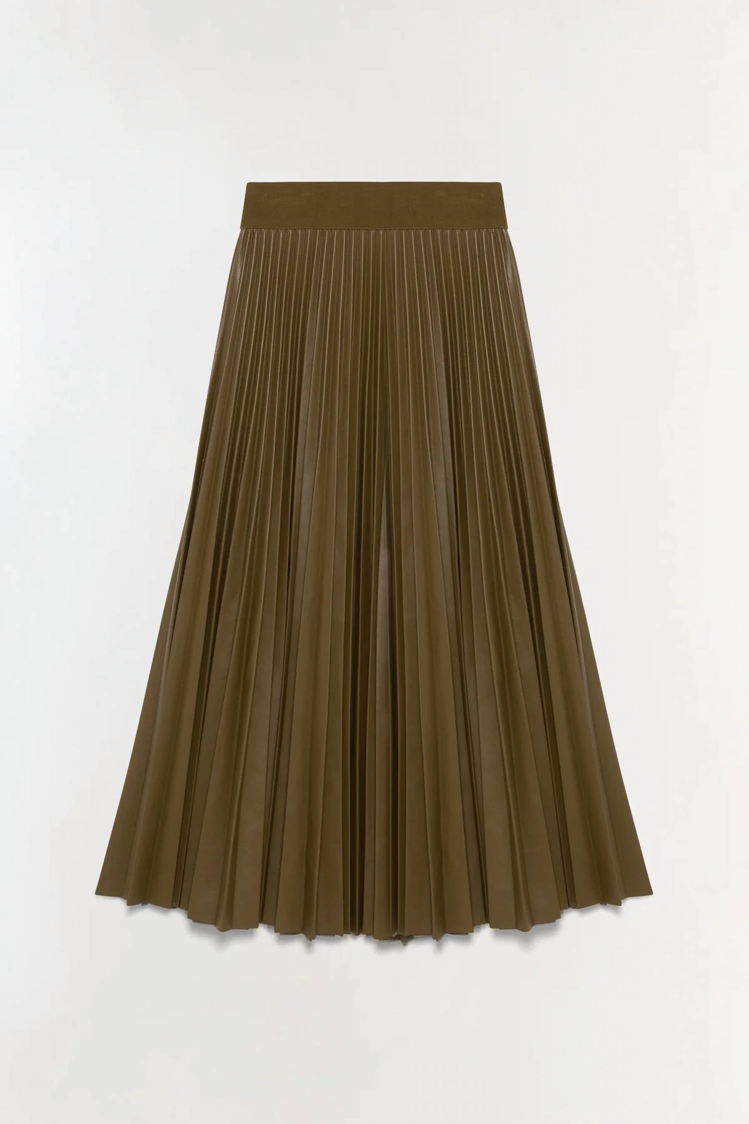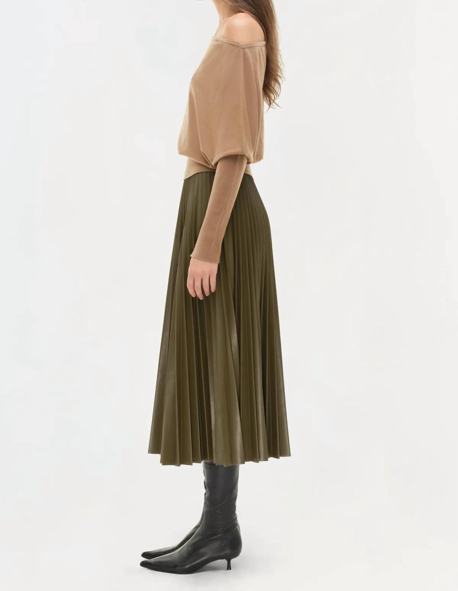 Show off just the right amount of skin in this beautifuly designed midi length skirt. A midi-length skirt crafted from vegan leather in a micro-pleated design.