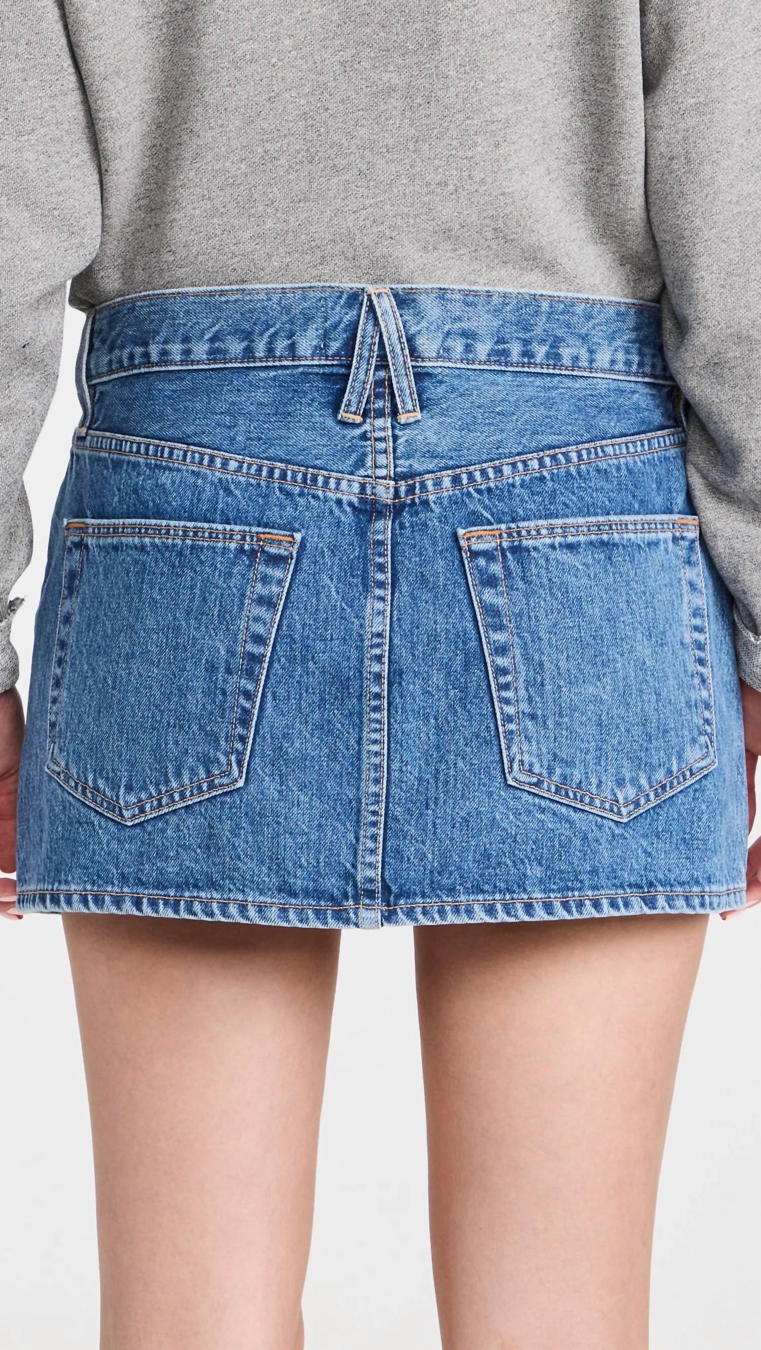 The perfect mini skirt does exist. Experience the timeless charm of the SLVRLAKE Micro Denim Mini Skirt in a solid "Sweet Memory" indigo wash. With a garment length of 12.75 inches, this low-rise mini skirt is crafted from 100% pure rigid cotton and features a comfortable and luxurious feel. Made in the US, it boasts five pockets and signature SLVRLAKE brushed antique nickel hardware, showcasing quality craftsmanship and a vintage-inspired look. Enjoy effortless style with a zip closure, and simply machine wash to maintain its fresh appearance.