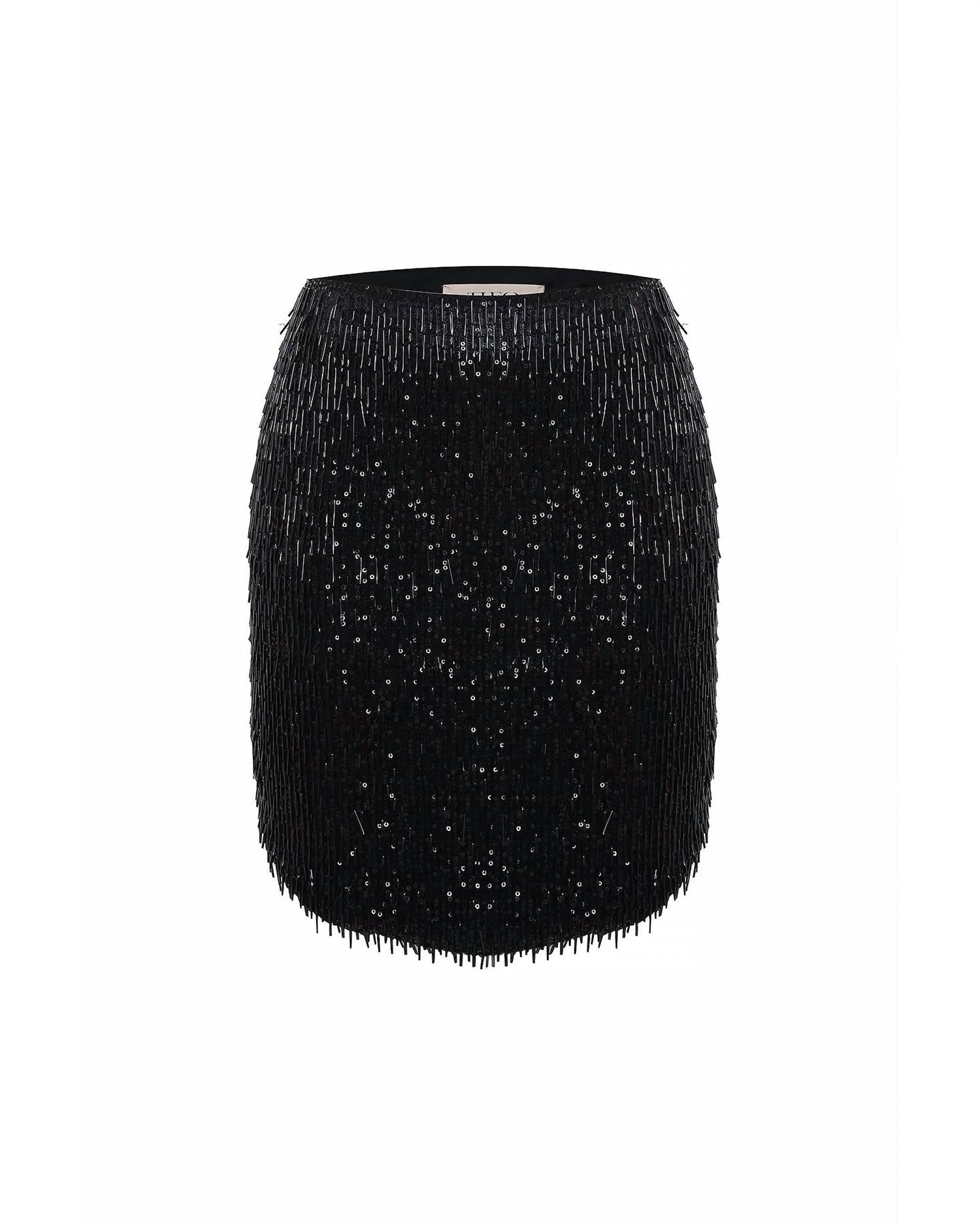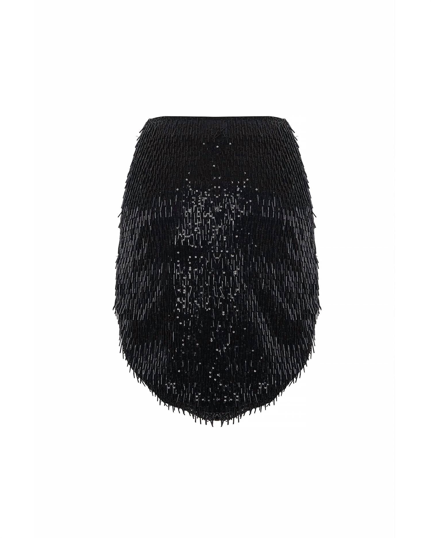 The perfect mini skirt does exist. Shine bright in THEO the Label's Kleio Sequin Skirt, a captivating black mini perfect for any cocktail party or festive occasion. Crafted with a sculpting silhouette and all-over embroidered sequins, this high-waisted skirt is designed to catch the light beautifully. The stretch jersey lining adds comfort and ease, ensuring you feel as good as you look. Ideal for celebrations like New Year's Eve or weddings, this textured piece will make a dramatic statement all spring season.