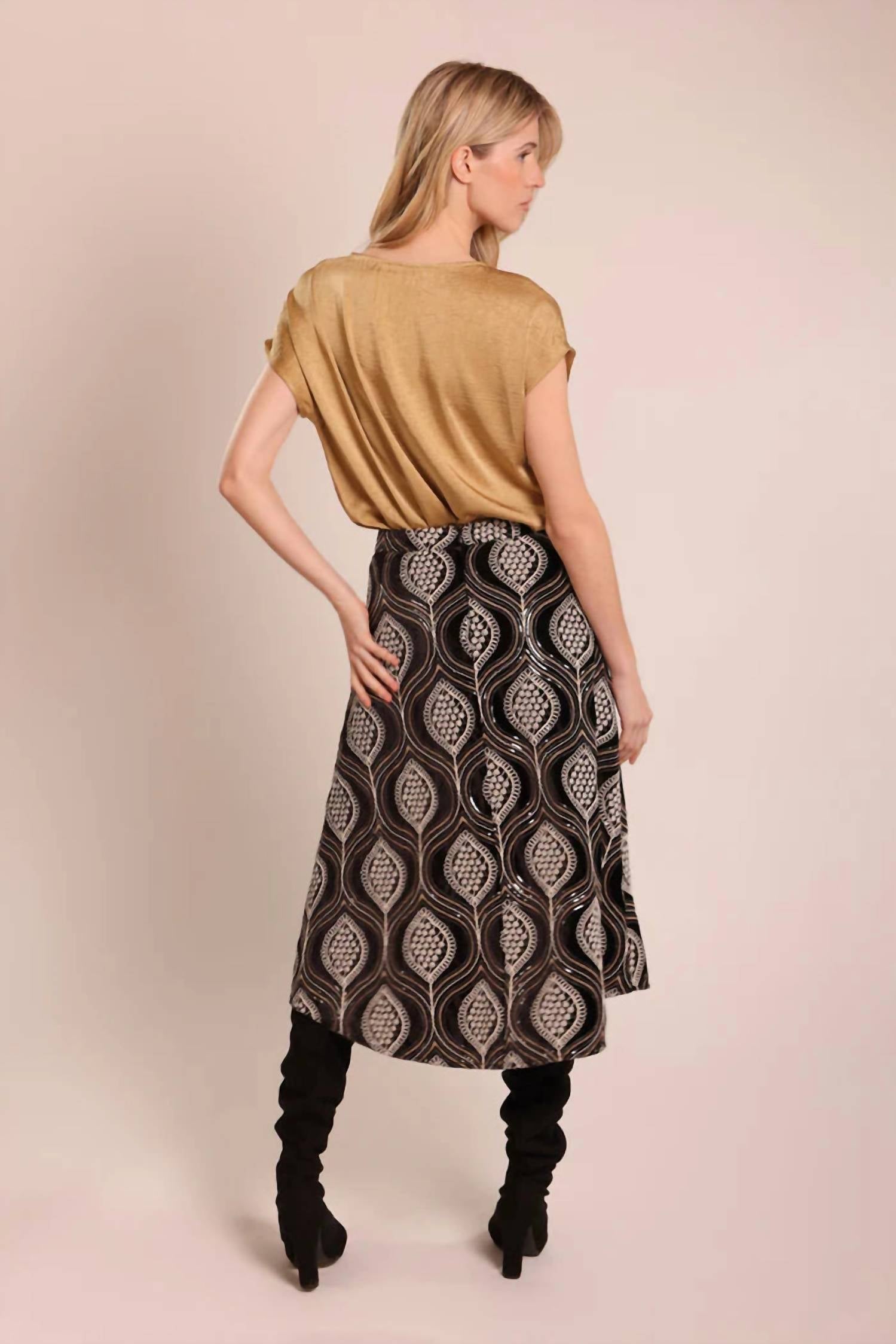Show off just the right amount of skin in this beautifuly designed midi length skirt. Discover the Anarchy Skirt by Traffic People, a stunning midi-length piece perfect for any holiday party in a chic black and white color scheme. This cotton blend skirt features classic A-line fit, convenient side pockets, and a secure back zip closure. Composed of 96% Cotton and 4% Elastane with a 100% Cotton lining, it offers both comfort and style with elegant embroidered and sequined details. For care, machine wash at 30°C and avoid bleach or tumble dry to maintain its beauty.