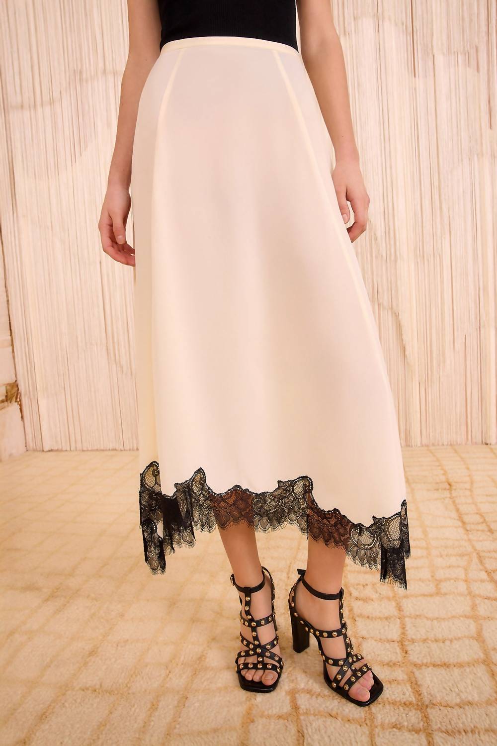 Show off just the right amount of skin in this beautifuly designed midi length skirt. Introducing the Women's Rosine Asymmetrical Skirt by Ulla Johnson, the perfect boho chic addition to your spring wardrobe. This textured midi skirt in a soft crema hue adds a unique flair to any vacation ensemble. Designed with no pockets for a streamlined look, it offers effortless elegance. Complete your outfit with its asymmetrical style, ideal for those seeking a modern, sophisticated touch.