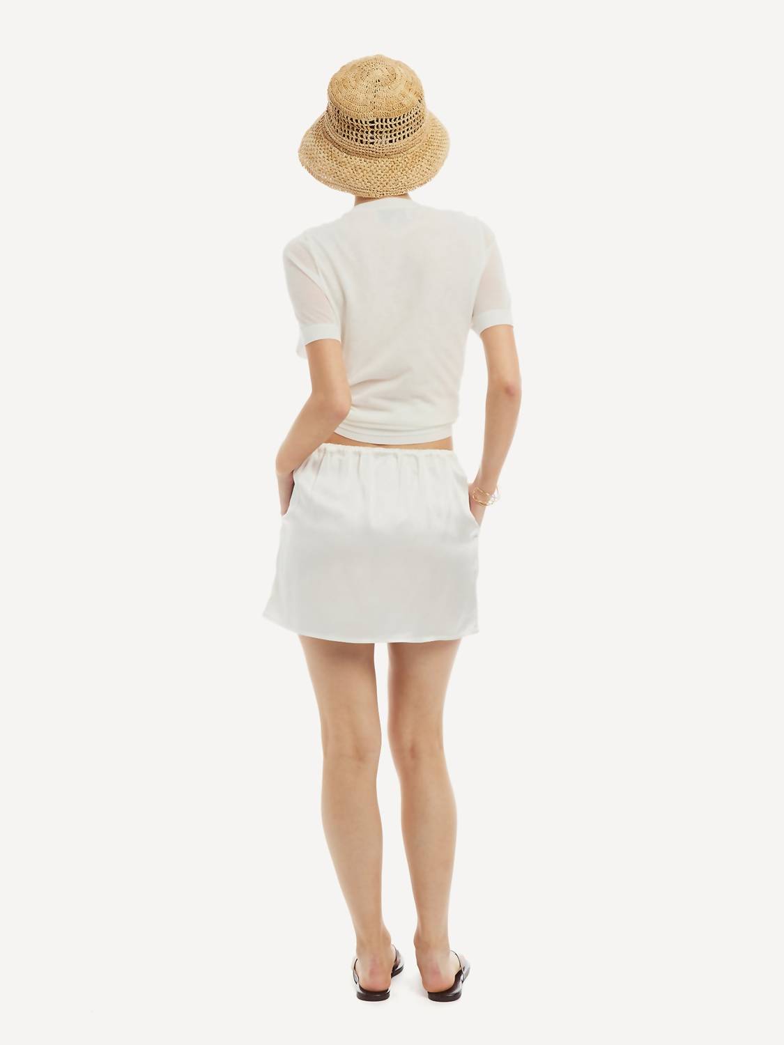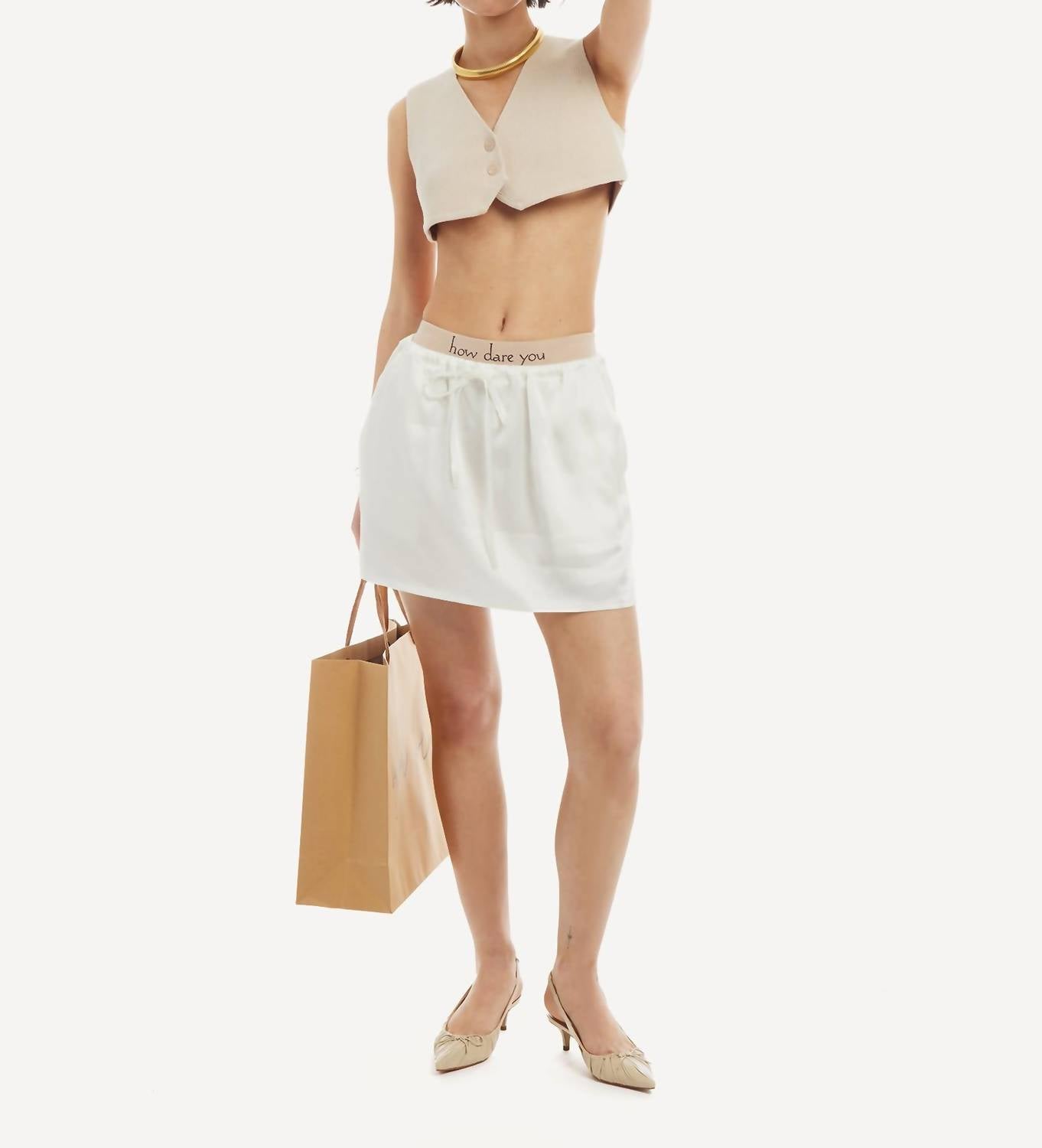 The perfect mini skirt does exist. Discover the Flowy Skirt by Wyld Blue, a minimalist masterpiece crafted for Spring vacations. This solid white mini skirt features a flowy design with the convenience of a pull-on closure, perfectly suited for effortless style. Composition: 100% Rayon, offering a lightweight and breathable feel. Ideal for adding a touch of elegance to your warm-weather wardrobe.
