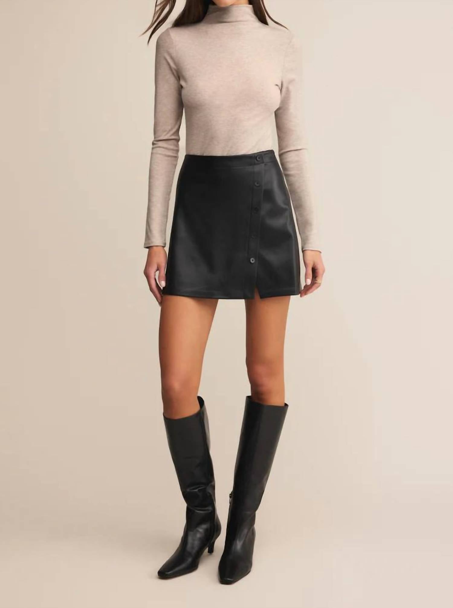 Show just the right amount of leg in this fit flattering mini. Introducing the Women's Allegra Mini Skirt by Z Supply, a chic monochrome essential in sleek black. This mini skirt is crafted from buttery-soft faux leather, featuring a high-rise fit and a smooth, structured finish. Composition: 100% Polyurethane. Closure: Button closure. Care: Dry clean only. Perfect for vacation or a stylish Thanksgiving ensemble.