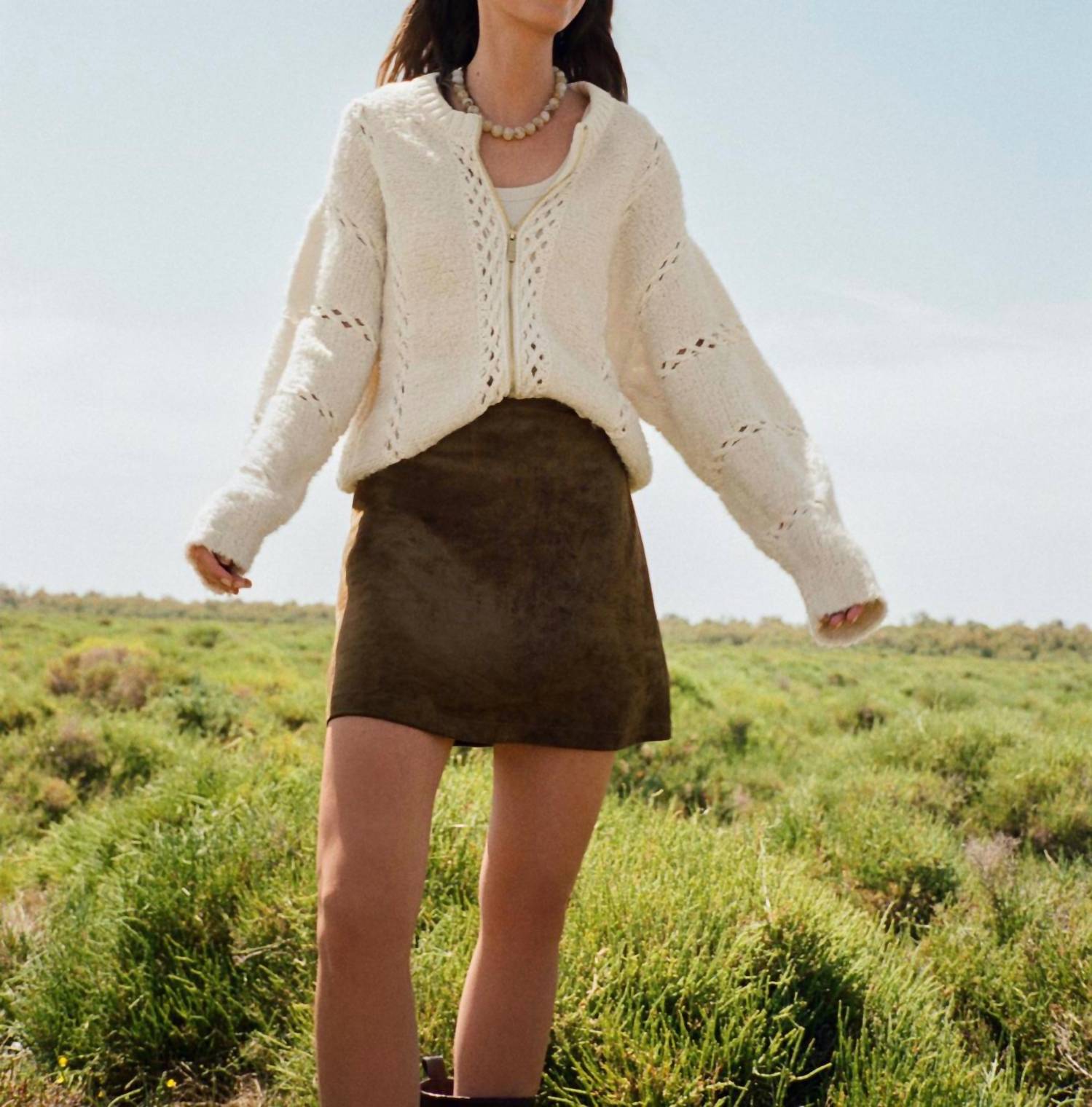 Show just the right amount of leg in this fit flattering mini. Introducing the Ciera Mini Skirt by Z Supply, a buttery soft faux suede piece in a chic coconut hue. Expertly tailored, it features a clean zip-back closure, offering a sleek fit that complements cozy sweaters and stylish boots. Composition: 100% Polyester. Care: Hand wash. Model is wearing a size small, and this item runs true to size.