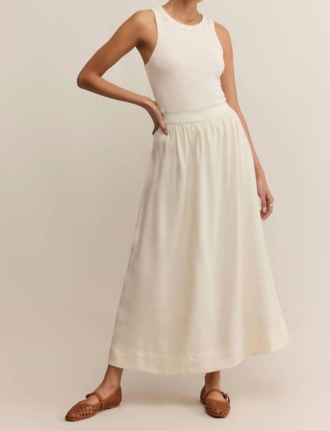 Tuck in your favorite tee for a more casual yet feminine look. Introducing the Women's Serendipity Maxi Skirt by Z Supply, a minimalist masterpiece in a serene Sea Salt hue. Crafted from 98% Polyester and 2% Spandex, this skirt promises comfort and an elegant drape perfect for a holiday party. Its pull-on closure ensures easy wear, making it a versatile addition to your spring wardrobe. Care instructions recommend hand washing to maintain its pristine quality.