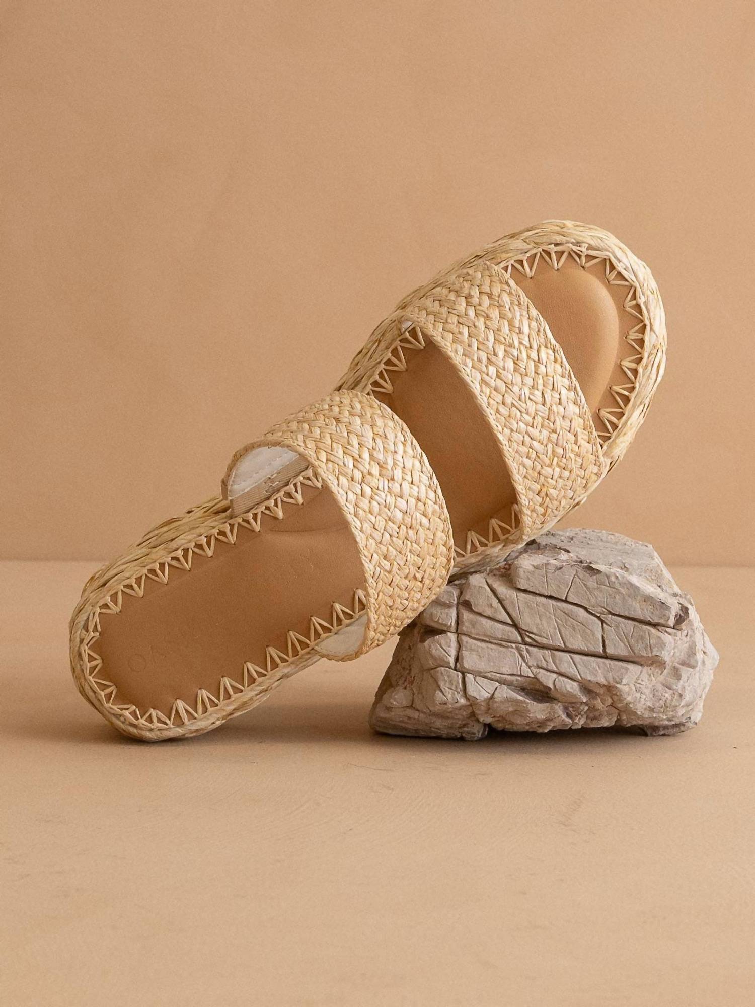 Oasis Society - Women Marley Basket Woven Double Strap Platform Slide