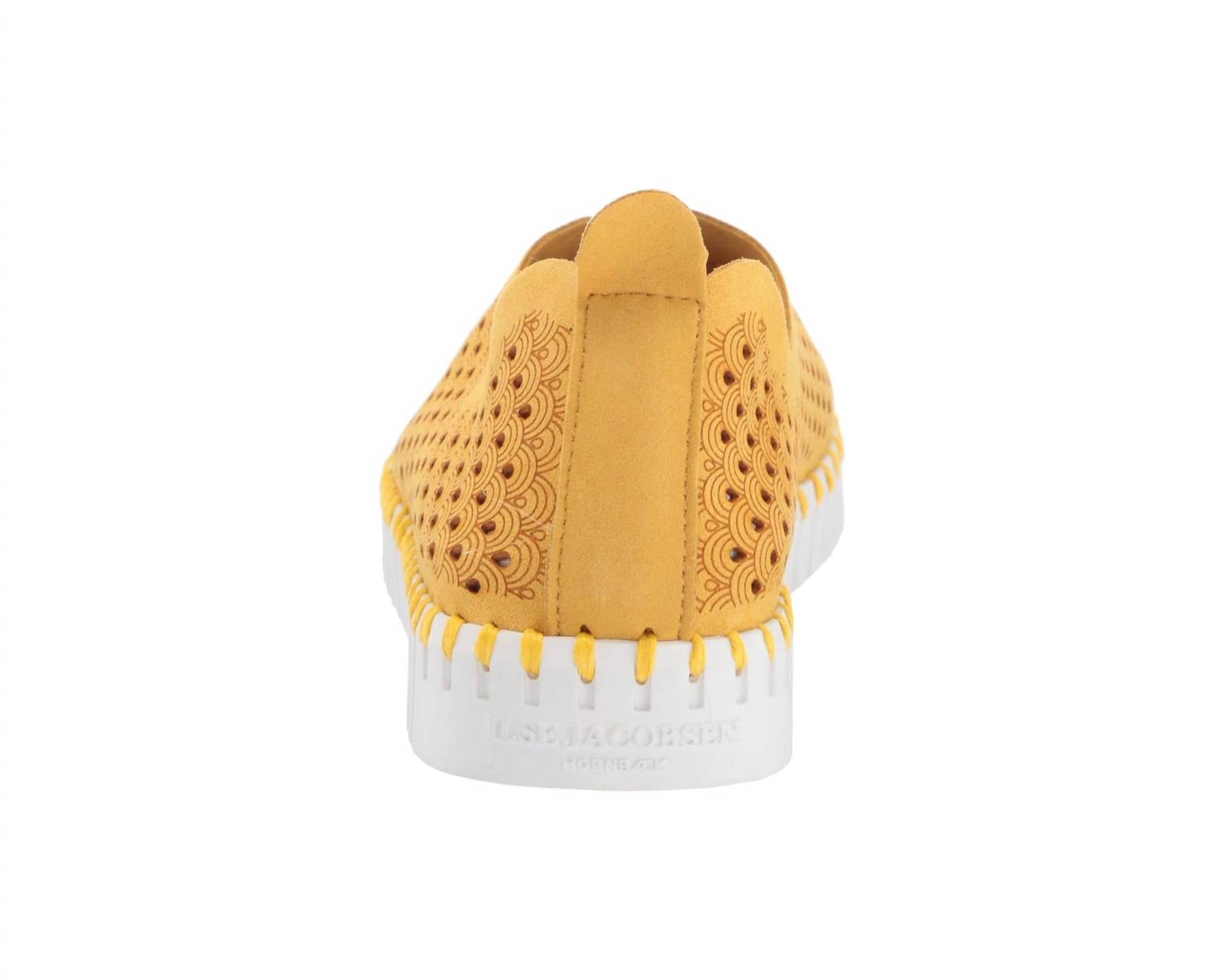 Pair these with a cozy robe and we call this loungewear luxe. Discover the Women's Tulip 139 Shoe by Ilse Jacobsen, an ideal choice for travel and everyday wear in vibrant Golden Rod. Crafted from recycled microfiber, this lightweight shoe boasts a breathable upper construction with a laser cut pattern, requiring no glue. Its flexible outsole, made of natural rubber, ensures comfort with every step. Embrace the maximalist trend with this flat-heeled, round-toe slipper that pairs versatility with style, perfect for the summer season.