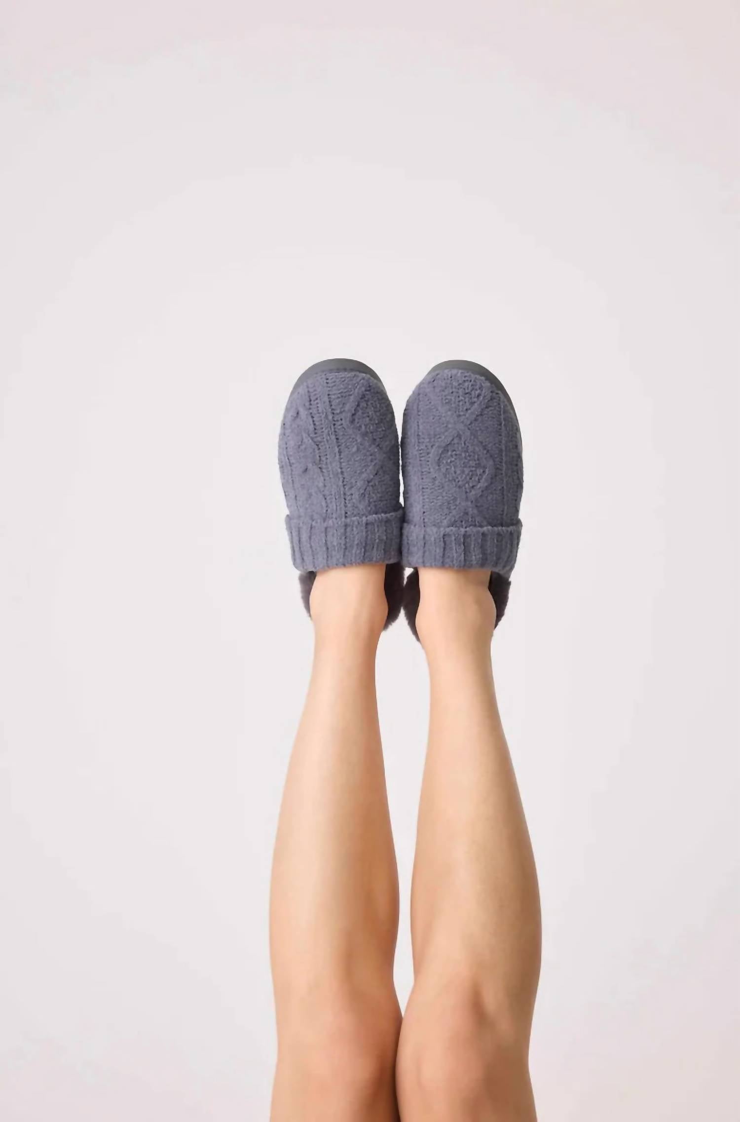 Wrap your feet in comfort with the PJ Salvage Cable Crew Slipper Slides, crafted from 100% polyester chenille cable knit and available in charcoal. These women's slip-ons feature a plush faux fur lining and a flat heel for a cozy feel, complemented by a molded lug sole that provides stability and grip. Perfect for lounging at home, these slippers are offered in sizes S to XL, accommodating various foot sizes. With a round toe design and imported quality, these slides are a chic addition to your lounge essentials.