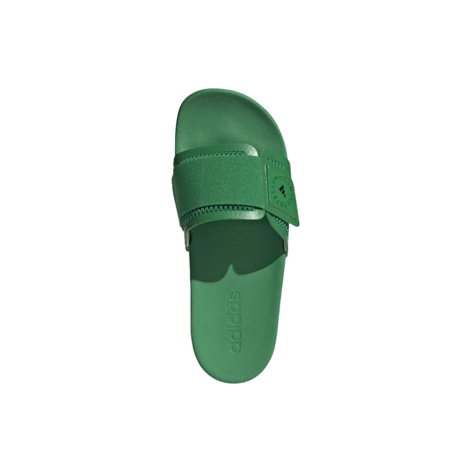 Slip into these, we promise you won't regret it. Experience unmatched comfort with the Women's Stella McCartney Slides by adidas, boasting an eco-conscious design. These slides feature a regular fit with an adjustable hook-and-loop strap closure, ensuring a perfect fit every time. Crafted from a textile upper, this innovative yarn contains at least 50% Parley Ocean Plastic and 50% recycled polyester, making it a sustainable choice. The Cloudfoam footbed and bio-based EVA midsole with 10% algae content deliver unparalleled comfort for any occasion. The open-toe design, adorned with the adidas by Stella McCartney logo, is perfect for streetwear trends or relaxing vacations.