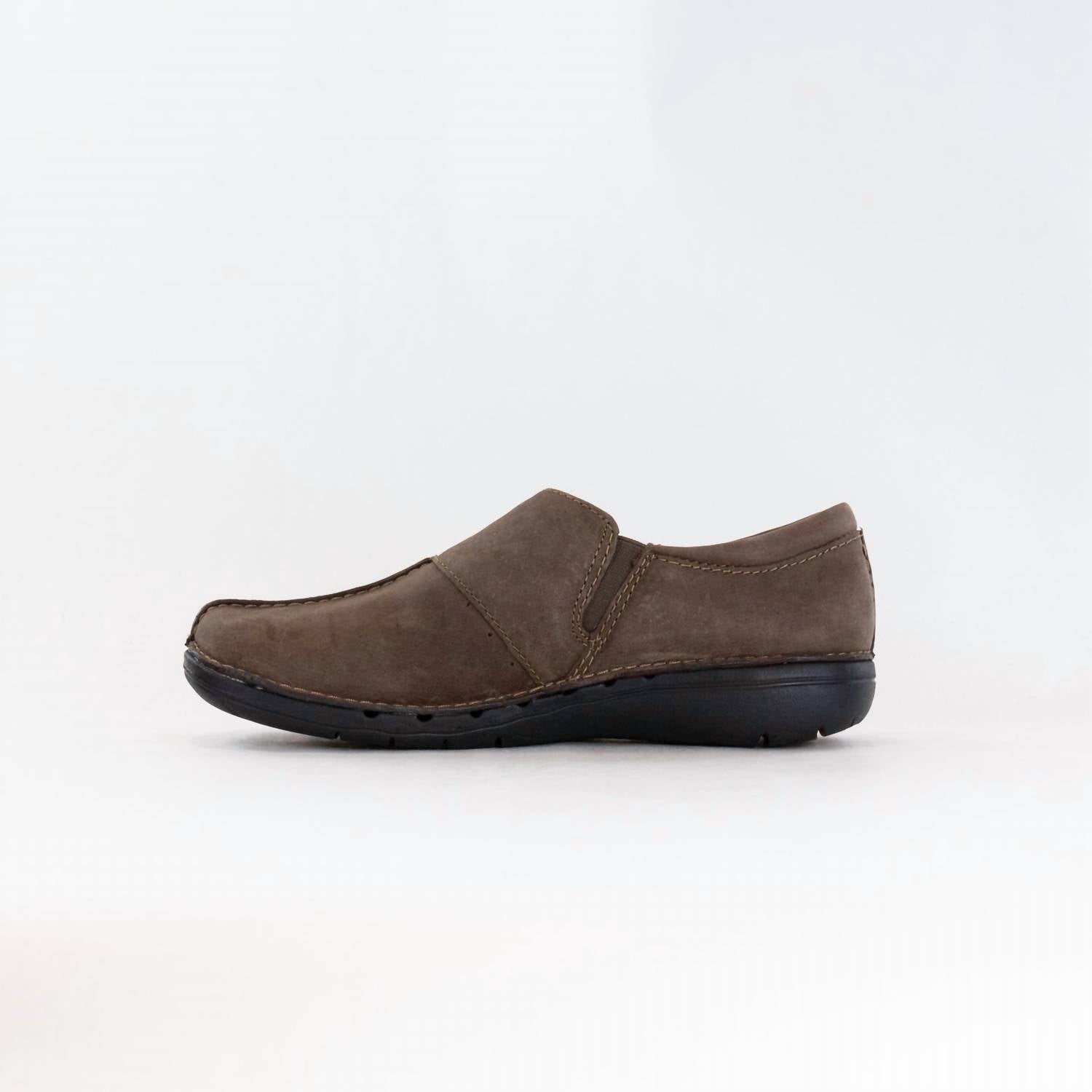 Discover the Women's Un Loop Ave Slip On Leather Shoes from Clarks, a perfect blend of comfort and style for every occasion. These shoes feature a responsibly sourced leather upper with breathable leather lining and a shock-absorbing EVA outsole. The soft foam footbed ensures all-day comfort, while the 30mm (1.18 inches) flat heel keeps your steps light and steady. Ideal for minimalist travel and Thanksgiving gatherings, this versatile leather pair seamlessly transitions from work to weekend wear.