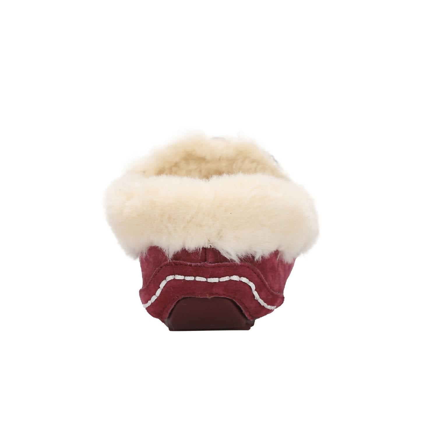 So comfy it's like you're walking on clouds. Introducing the Women's Aussie Moc Shoes by Lamo, a stylish choice for any holiday party. These slippers in a rich burgundy color are crafted with luxurious faux fur, ensuring both comfort and durability. With a classic round toe design, they're perfect for fall gatherings or lounging in style. Originating from renowned Lamo Footwear, these mocs are a chic addition to any wardrobe.