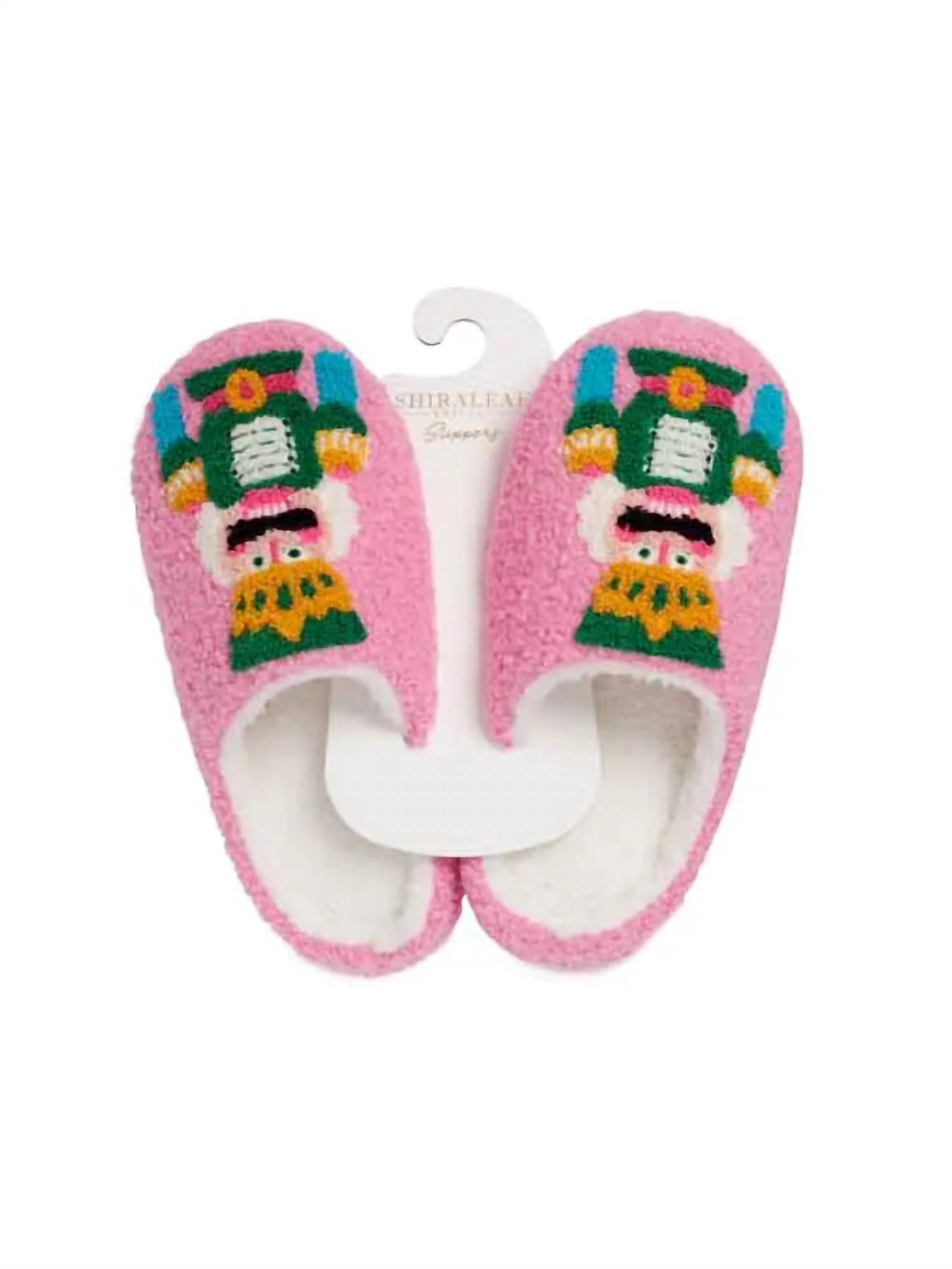 Pair these with a cozy robe and we call this loungewear luxe. Step into the festive spirit with Shiraleah's Women's Nutcracker Slippers, perfect for cozy winter evenings. Made from 100% polyester and TPR, these comfortable slip-ons feature a playful embroidered nutcracker face against a soft pink sherpa exterior. The slippers provide a round toe shape and flat heel for everyday lounging, with sizes available in S/M (7-8) and L/XL (9-10). Ideal for housewarming occasions, these slippers bring minimalist style to the magic of Christmas celebrations.