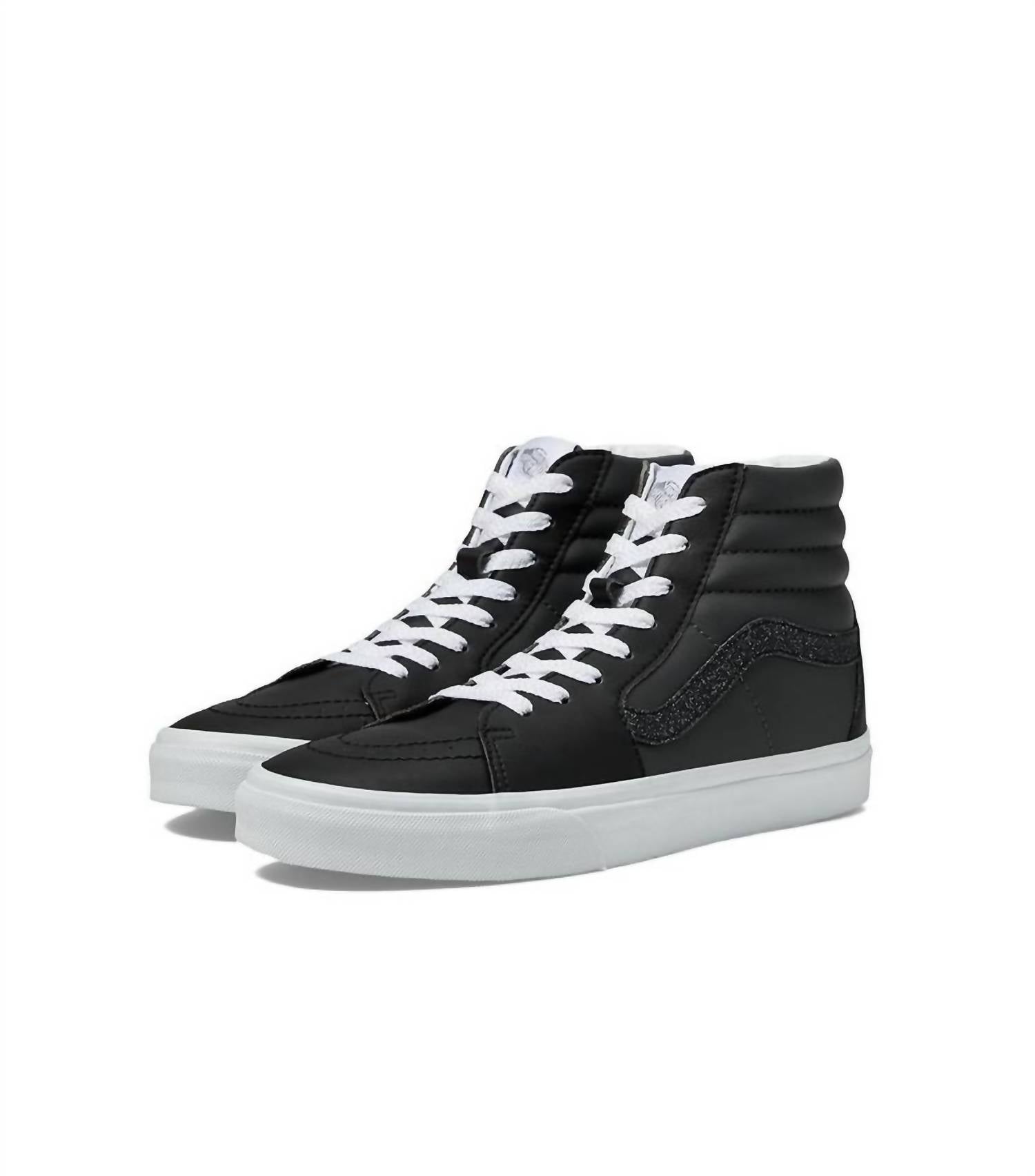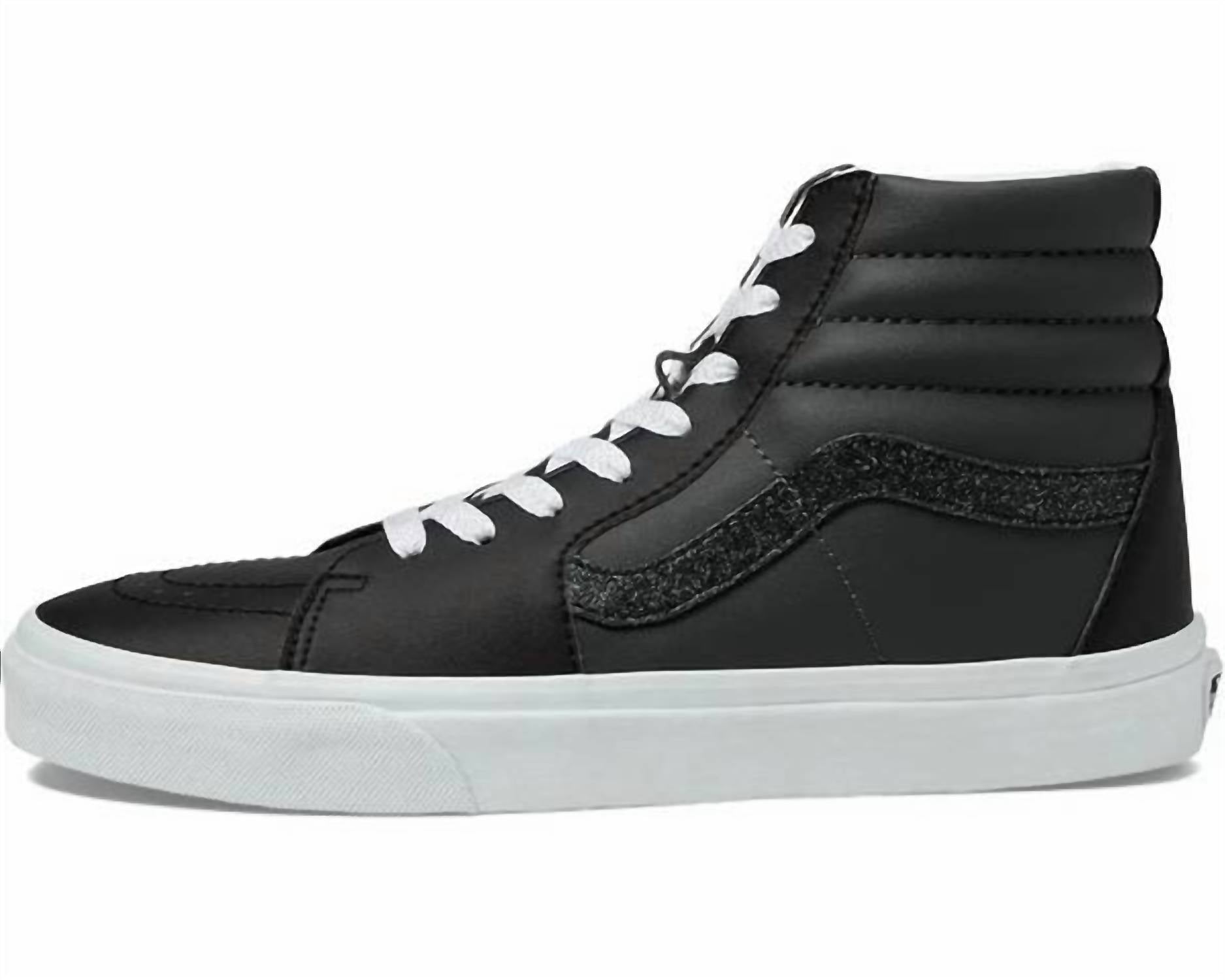 When fashion and function come together seamlessly. Elevate your sneaker collection with the Unisex Sk8-hi Shoe by Vans, offering a stylish edge in Rhinestone Pop Black. Crafted from premium leather, this sneaker boasts a timeless round toe design, perfect for the fashion-forward woman. Proudly made in Vietnam, these sneakers blend durability with iconic style. Ideal for adults seeking both comfort and standout appeal in their footwear.