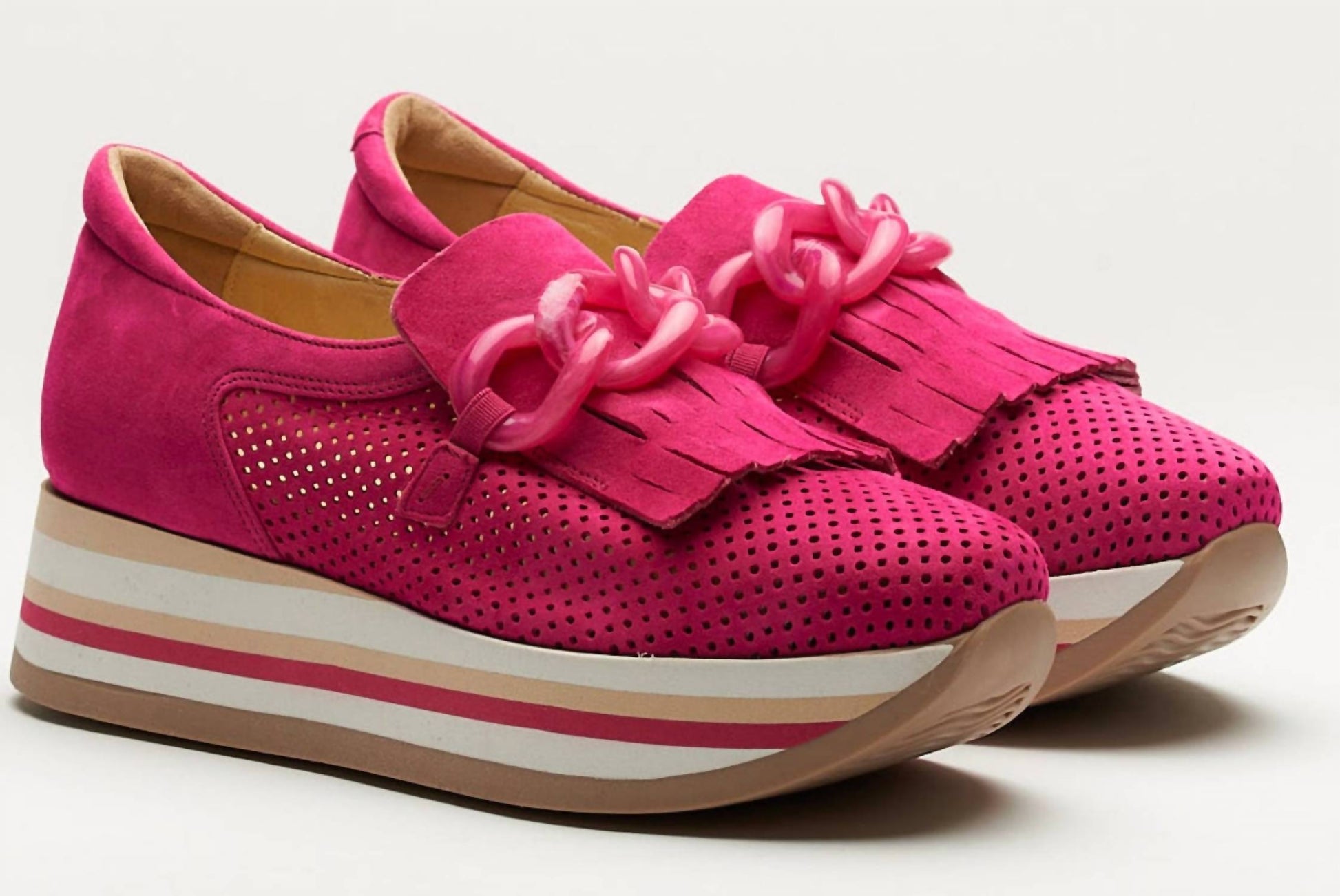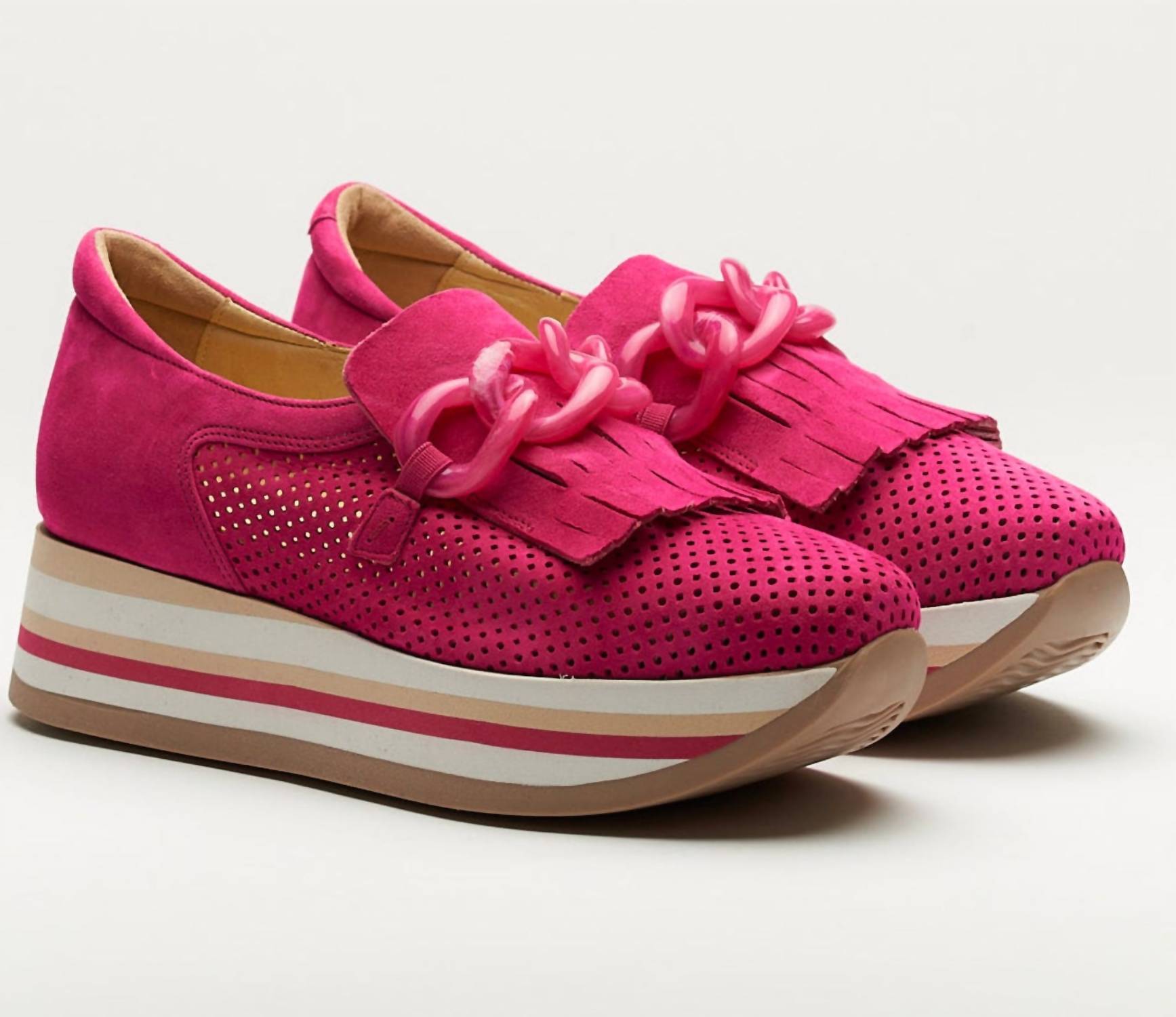 When fashion and function come together seamlessly. Step into spring with the Women's Cadie Platform Sneakers by Softwaves. Crafted from luxurious fuchsia suede, these sneakers elevate your holiday party looks with a minimalist edge. Perfect for Thanksgiving and beyond, they offer vibrant style for the season. Whether you're dressing up or going casual, these sneakers make a chic and comfortable choice.