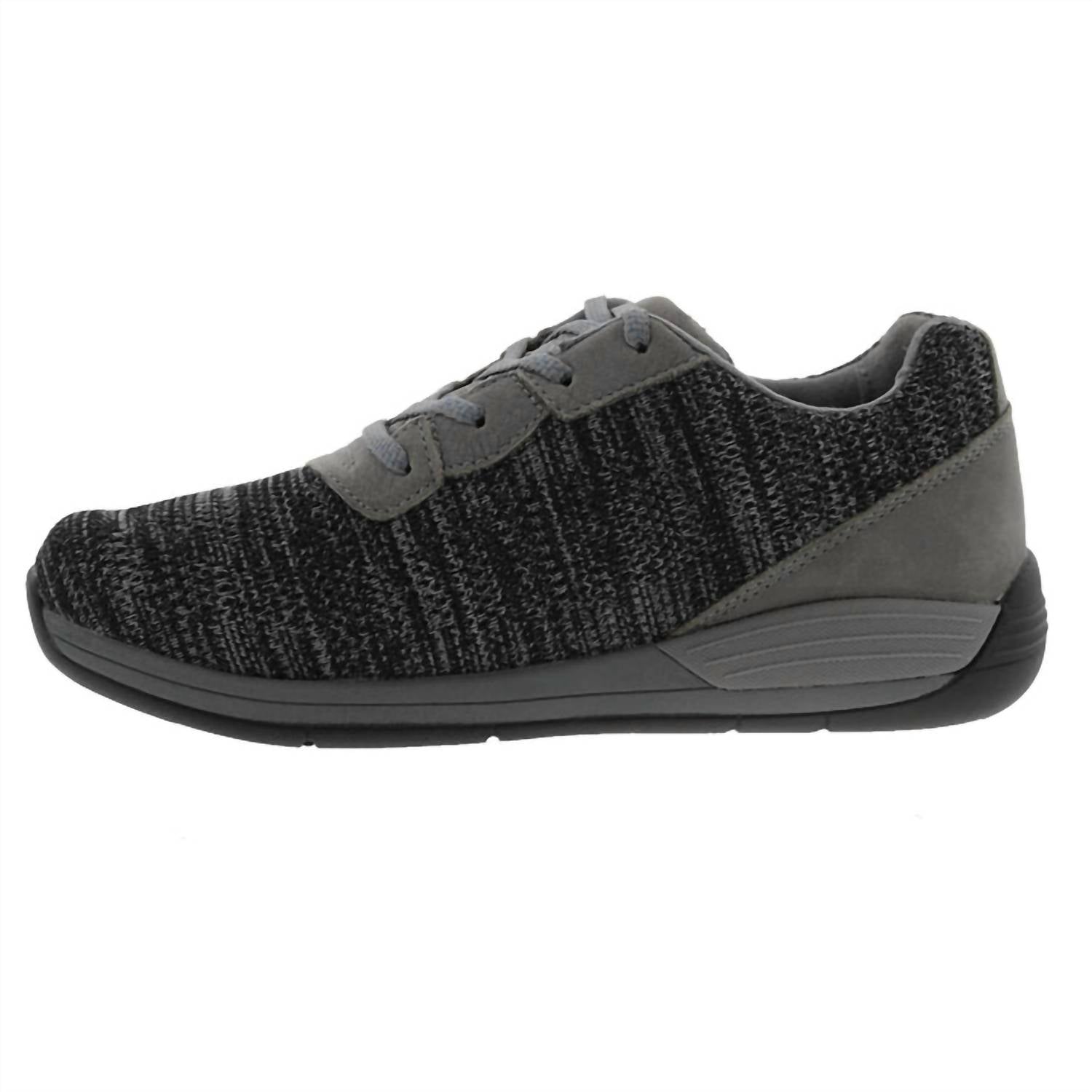 Cute, functional, and comfortable. These sneakers check all the boxes. Step into unmatched comfort with the Women's Terrain Tie Knit Shoes by DREW in Black Combo. Crafted from a soft knit material, these athleisure sneakers provide ultimate support with the Plus Fitting System® featuring two removable footbeds for customizable comfort. The lightweight polyurethane outsole is durable and slip-resistant, perfect for all-day wear. Designed with a round toe and flat heel, these shoes accommodate prescribed orthotics and offer Drilex® lining to keep your feet dry.