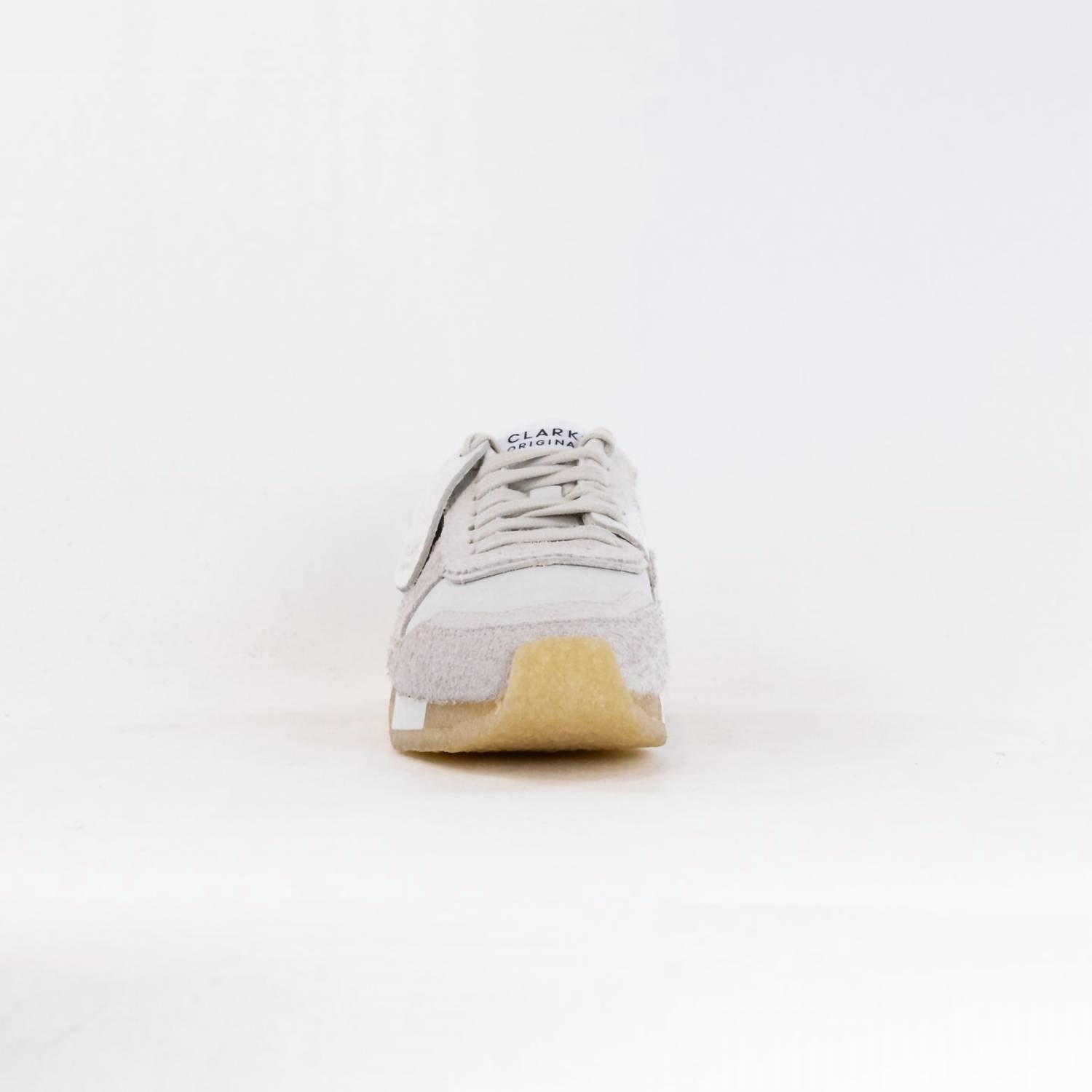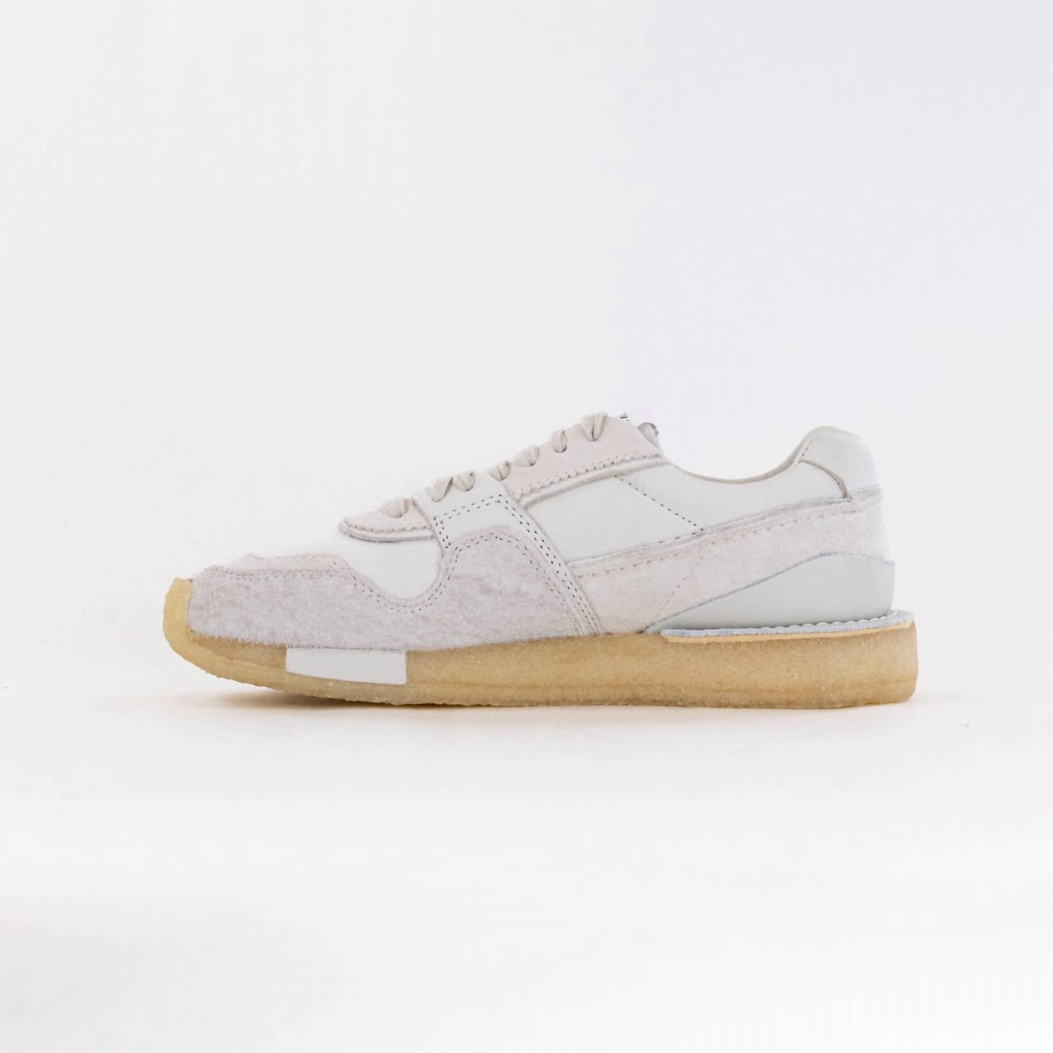 Cute, functional, and comfortable. These sneakers check all the boxes. Introducing the Women's Tor Run Shoes by Clarks, a stylish choice for the minimalist fashion lover. These WHITE COMBI sneakers showcase a retro aesthetic, blending mixed textures and shades with intricate perforated details. Ideal for a dinner party or a leisurely stroll, they feature a comforting sheep leather lining and Clarks' signature crepe sole for all-day wear. A flexible stitched construction ensures each step is taken with ease, making them your go-to footwear for the spring season. Suitable for adult women with a round toe and flat heel design.