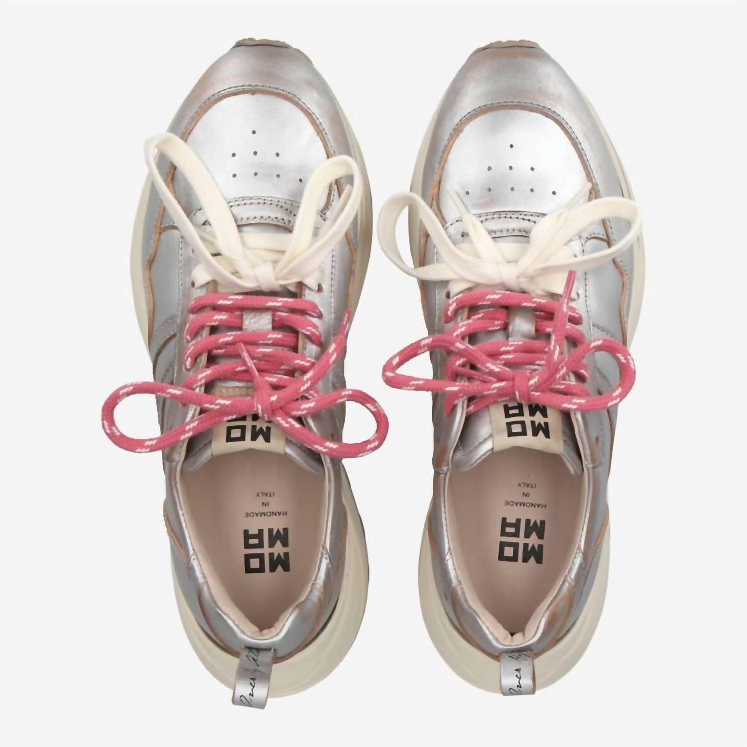 Get your daily steps in with these adorable sneakers. These sneakers feature a metallized leather upper and leather lining, with a removable leather insole perfect for custom insoles. Accentuated by decorative stitching and perforations, they offer a unique used look enhanced by a Vibram outsole. With a convenient entry loop, padded shaft, and additional laces, these sneakers promise comfort and style, with a low heel height of 1.57 inches.