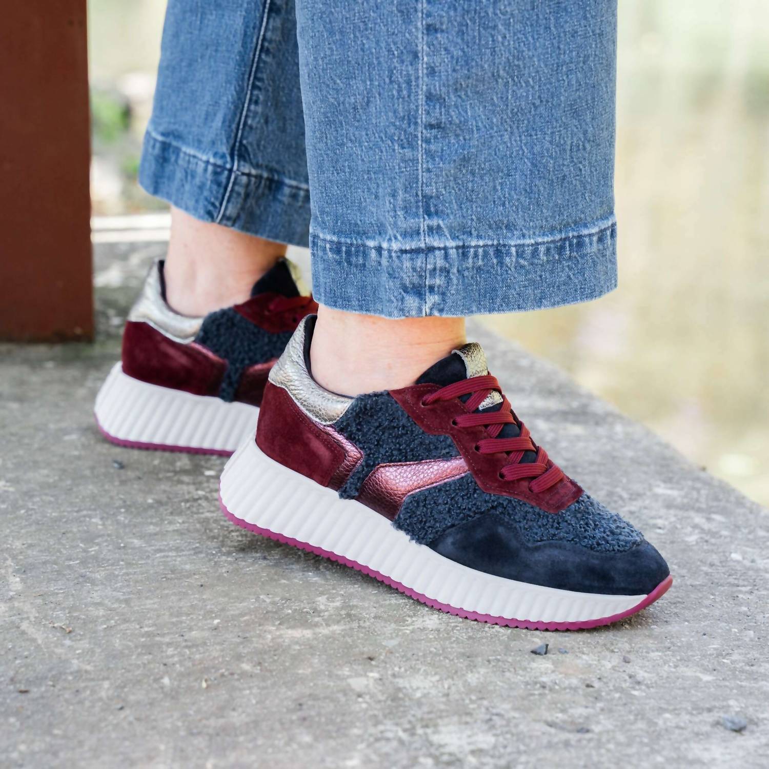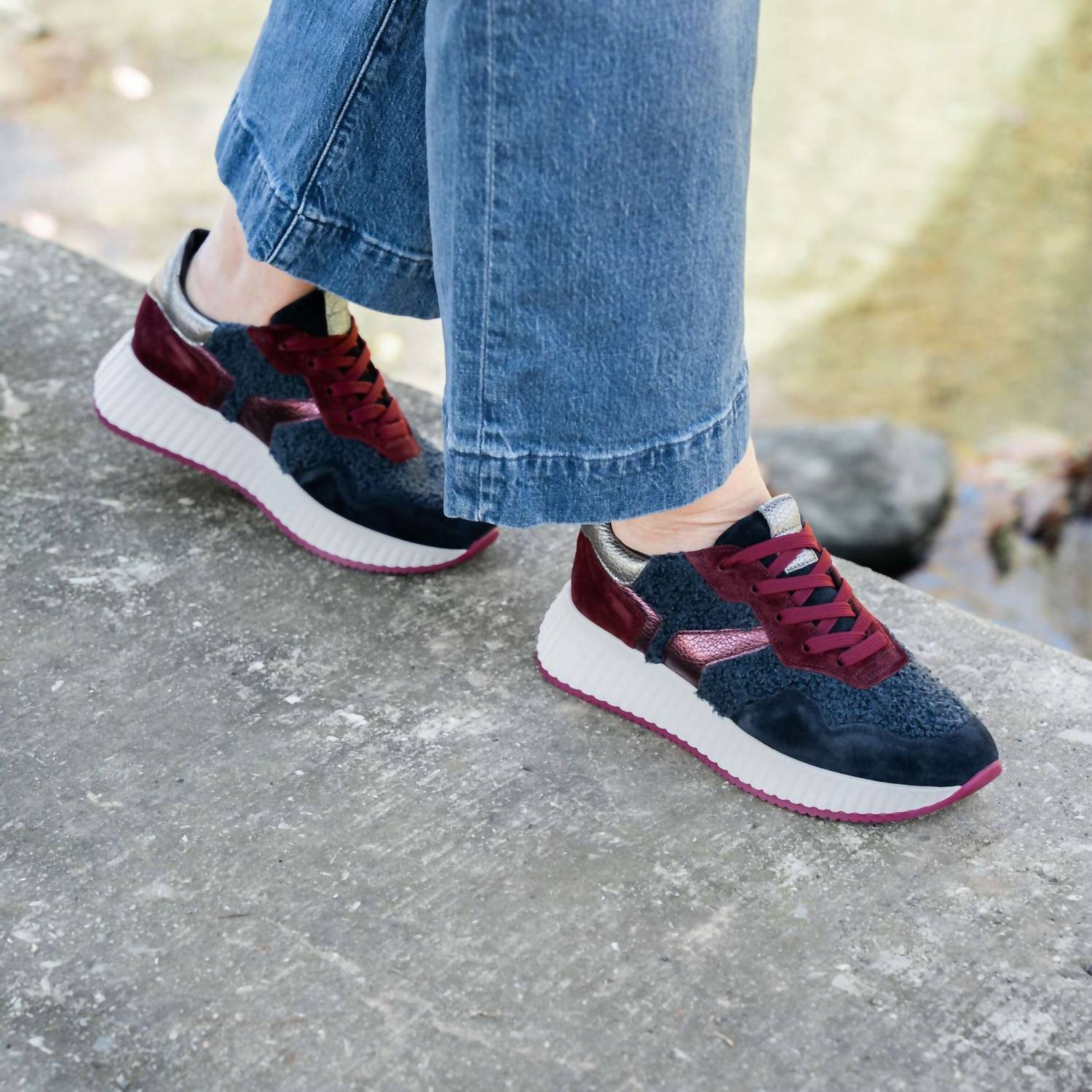 Get your daily steps in with these adorable sneakers. Great for travel or a fashion upgrade to your everyday sneaker, elevate your style with these sporty-chic sneakers. You're sure to love the mix of textures and rich colors—navy suede/terry trimmed with burgundy suede/metallic leather and matching laces. Retro yet modern, these versatile sneakers will pair well with athleisure outfits, jeans, and much more. The removable footbed with great arch support will have you walking comfortably all day.