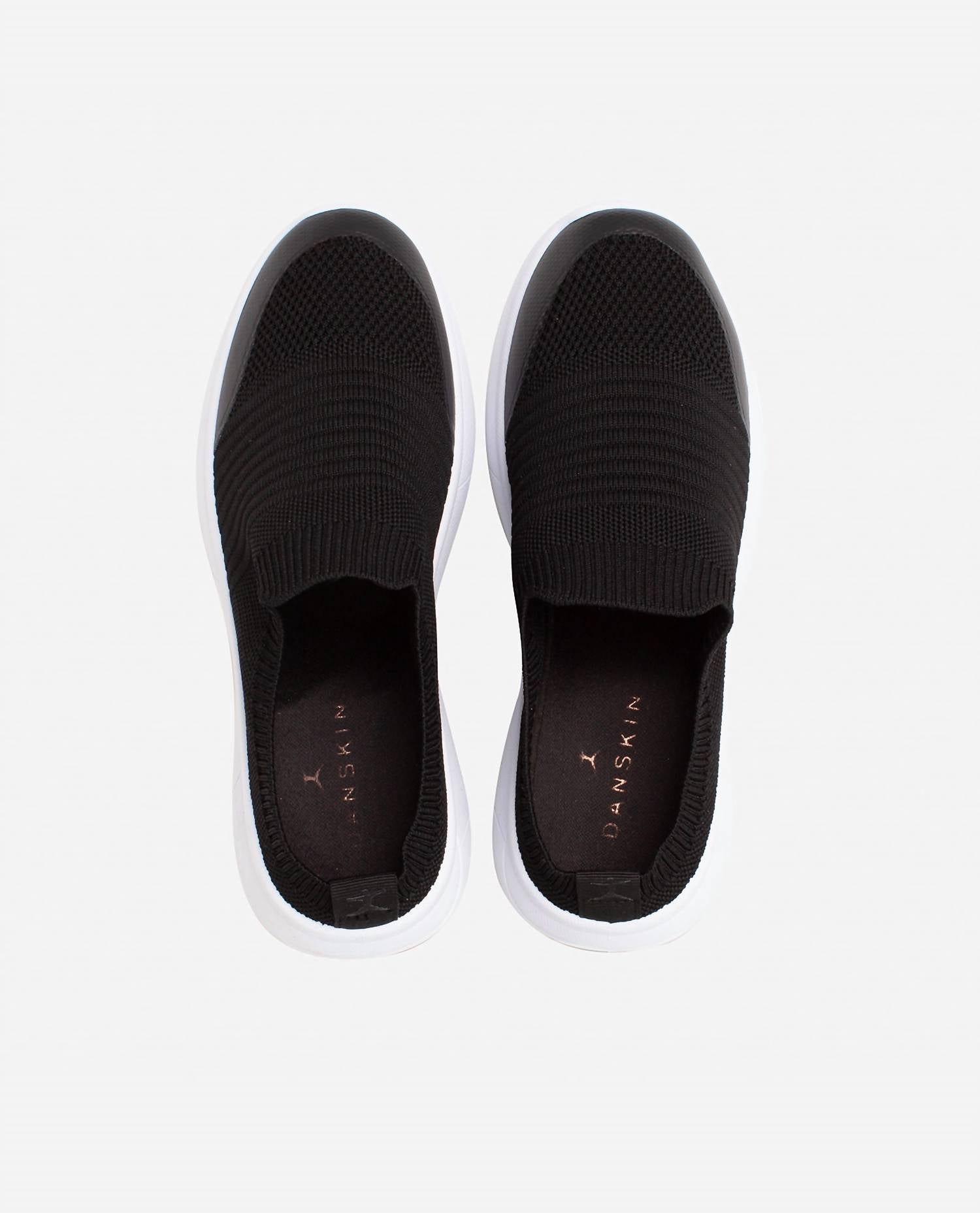 Step into effortless style with Danskin's Women's Slip On Sneaker in Calming Black. Crafted from 100% polyester, these sneakers offer a comfortable fit with a convenient slip-on design and a heel loop for easy wear. The rubber sole ensures durability and traction, fitting true to size for all-day comfort. Simplify your care routine with a simple wipe clean.