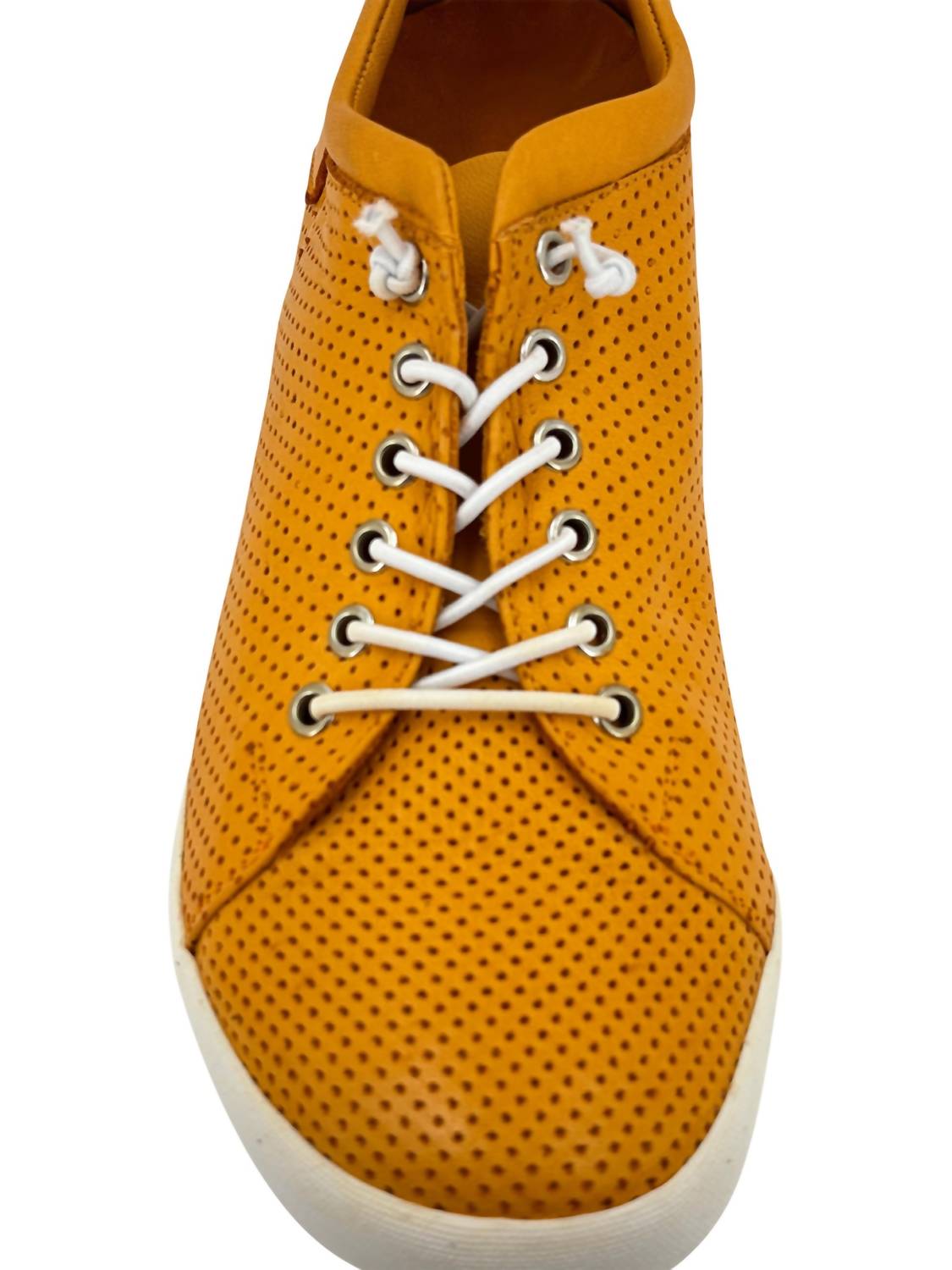 Cute, functional, and comfortable. These sneakers check all the boxes. Introducing the Women's Teejay Casual Sneakers by Gelato, perfect for elevating your spring and summer wardrobe. Crafted from premium perforated leather, these sneakers feature a full leather upper and lining, ensuring breathability and softness. A round elastic bungee lace closure offers a snug fit, with the option for regular laces to customize comfort, and a lightweight rubber outsole provides superior traction for versatile use. The extra cushioned, removable footbed ensures exceptional comfort and arch support, making these flat-heeled sneakers ideal for both travel and casual outings.