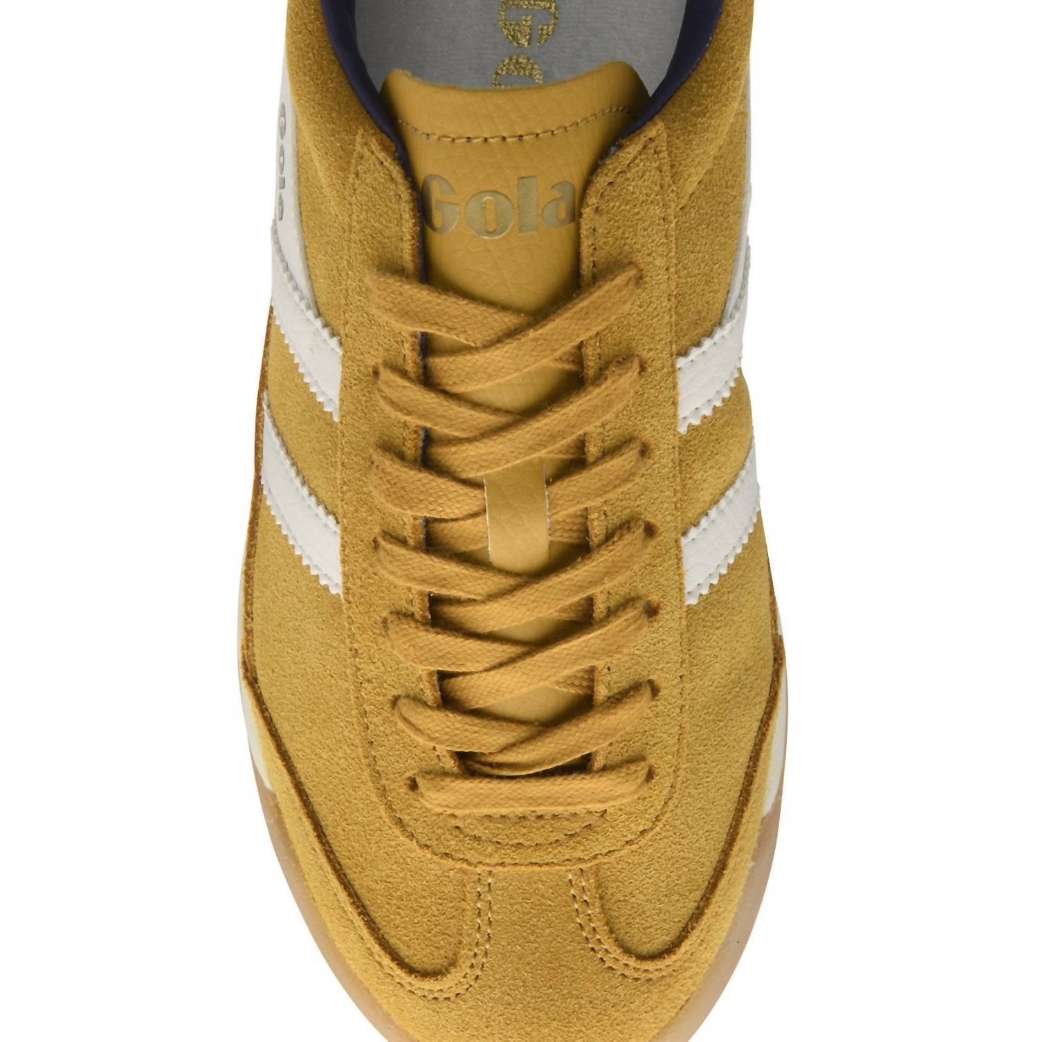 Get your daily steps in with these adorable sneakers. Step into vintage charm with the Women's Tornado '88 Trainers Sneaker by Gola, an epitome of minimalist style. Crafted with nylon and suede uppers in a striking emerald hue, it features a round toe and is perfect for a summer holiday party. This classic lace-up design sits upon a slight wedge gum sole, ensuring a comfortable yet retro look. Ideal for women seeking a touch of the past with contemporary flair.