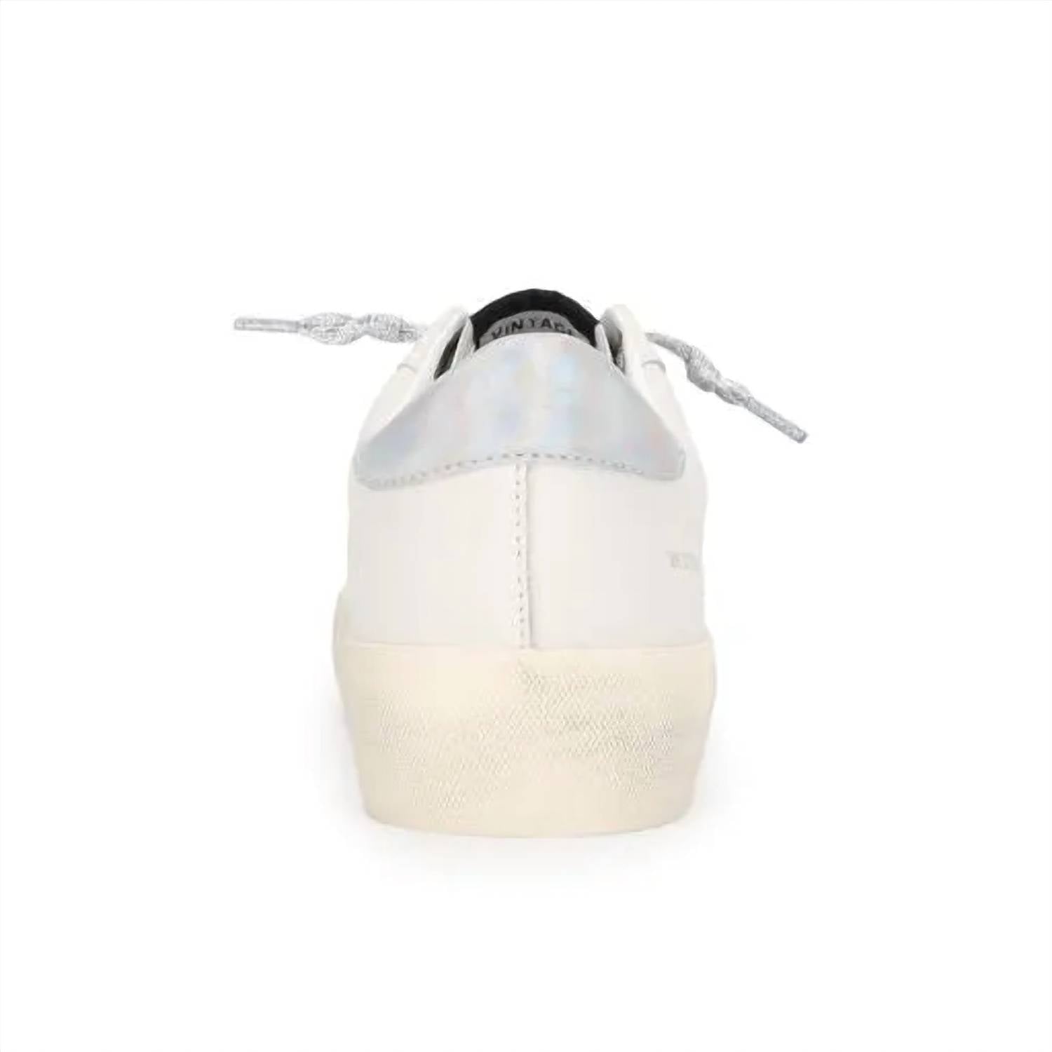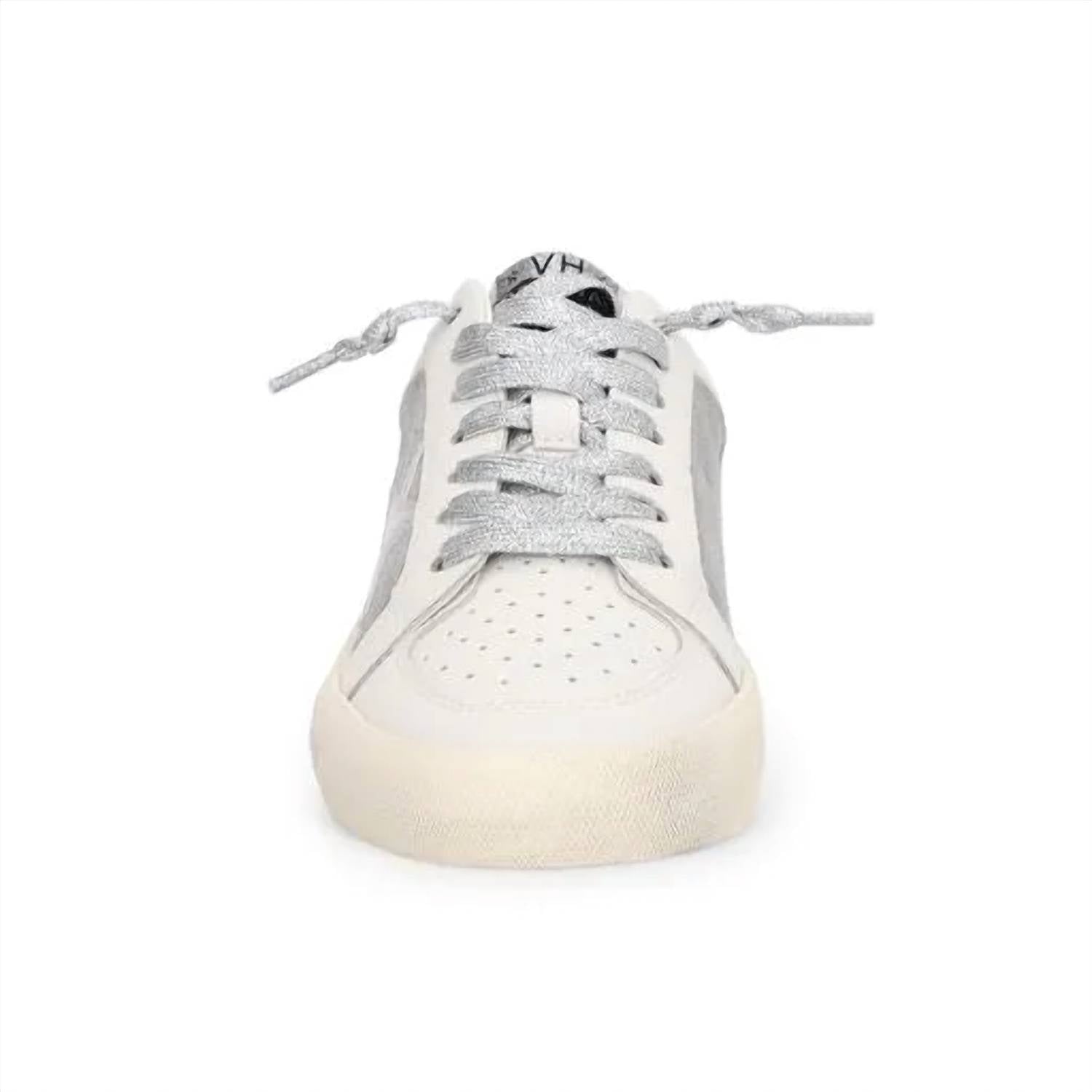Get your daily steps in with these adorable sneakers. Elevate your style with the Women's Reflex Sneaker by Vintage Havana in striking Silver Stars. Designed with a unique combination of synthetic, leather, and suede materials, this sneaker boasts a slip-on style with no tie laces for ease and comfort. Its traction signature outsole ensures a confident stride, and it fits true to size for a perfect fit. Embrace effortless chic and comfort on your next night out.