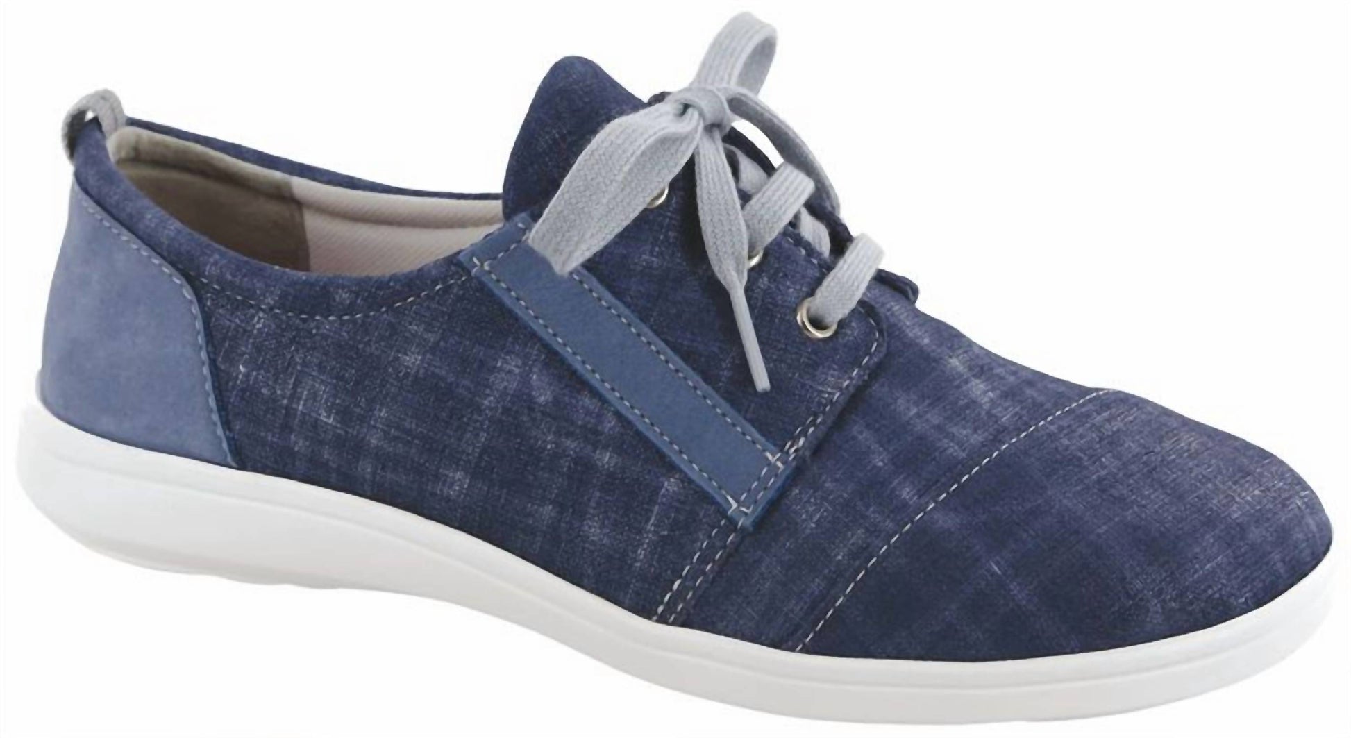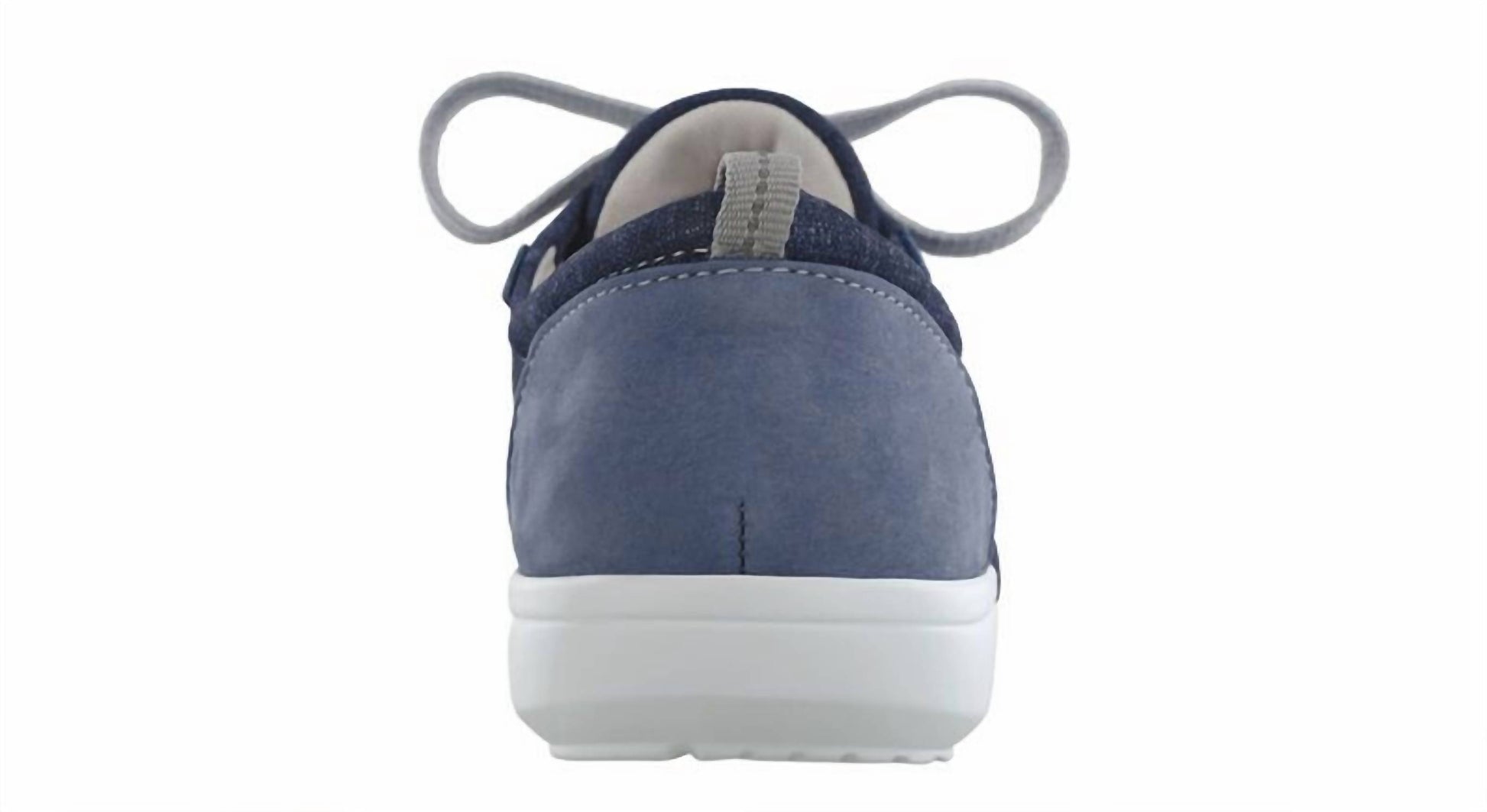 Get your daily steps in with these adorable sneakers. Step into comfort and style with the SAS Women's Marnie Sneaker in Blue Jay nubuck, perfect for casual occasions. The sneaker features a round toe and lace-up closure, offering a preppy vibe suited for summer trends and back-to-school days. The Strobel construction ensures lightness and flexibility, while the genuine leather and cushioned upper lining provide lasting comfort. Enjoy the innovative TRIPAD® technology and a 1.125" heel height with a removable footbed.