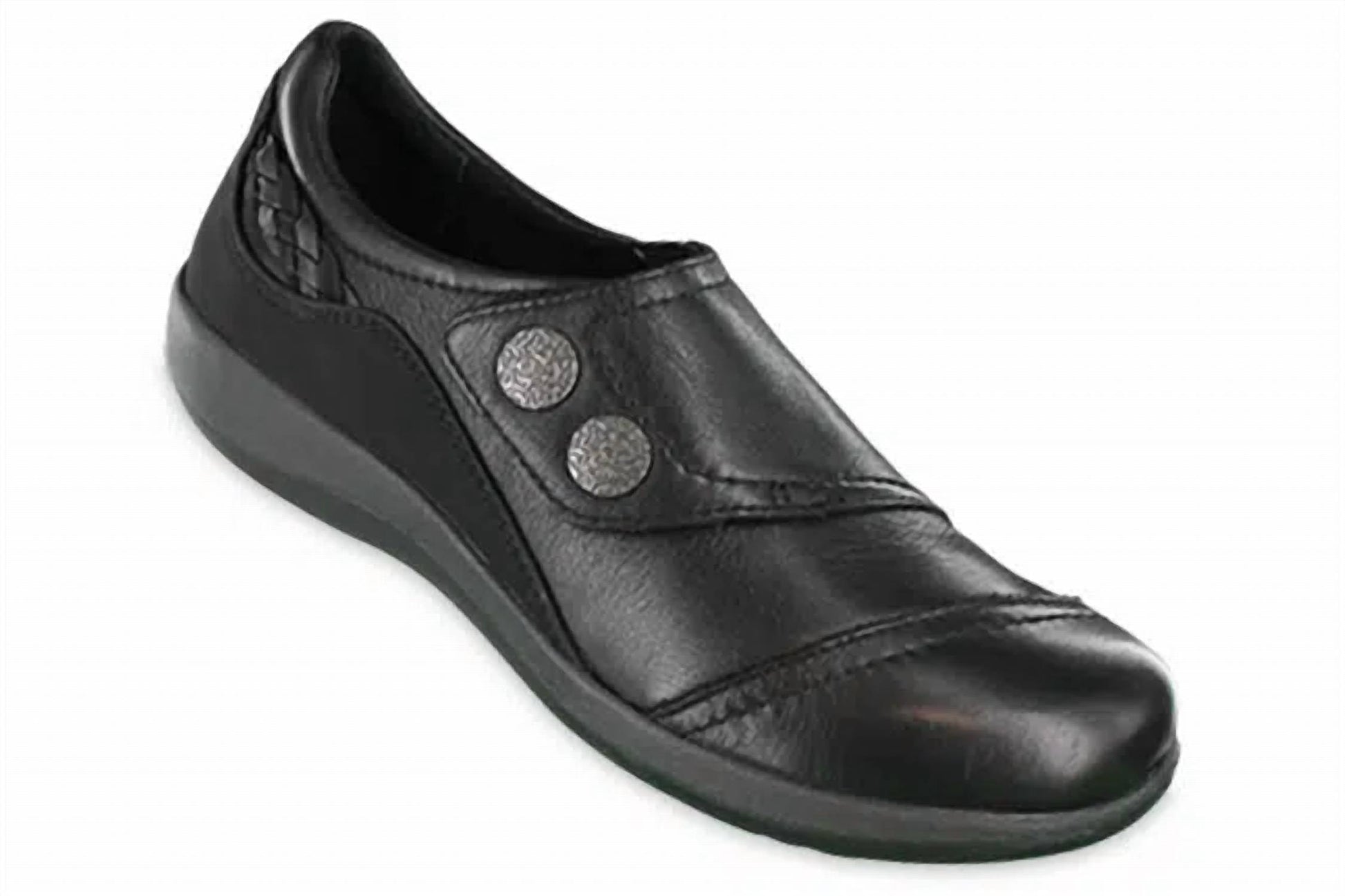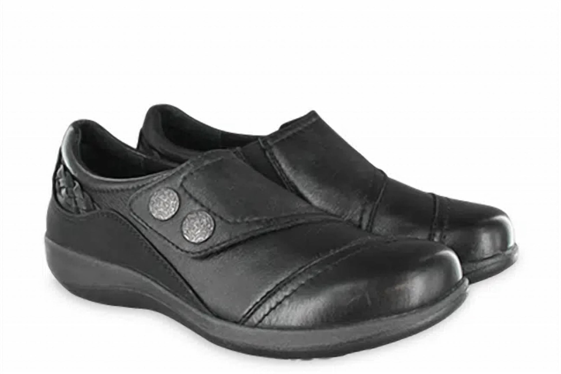 Cute, functional, and comfortable. These sneakers check all the boxes. This monk-strap shoe offers both style and function with a hook-and-loop closure for easy adjustability and a padded heel for added comfort. Crafted with a genuine leather upper, it’s built on a lightweight EVA foam midsole for lasting cushioning and durability, while the rubber outsole provides reliable traction. Designed with a removable insole and a 1.3" heel, it delivers versatile comfort and support for all-day wear.