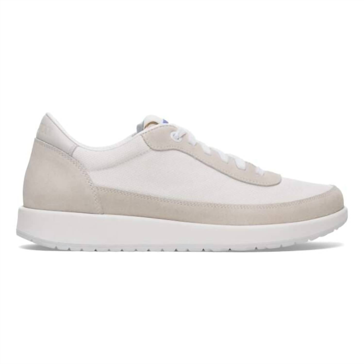 Cute, functional, and comfortable. These sneakers check all the boxes. Step up your style with the Women's Honnef City Sneaker by BIRKENSTOCK in Antique White, designed for both everyday wear and fitness endeavors. The sneaker showcases a textile and suede upper, complemented by a microfiber footbed lining and a lightweight TPU sole. Featuring a removable Deep Blue Footbed made of polyurethane, which offers layers of contoured support, it's built for comfort and durability. Made for athleisure and fitness occasions, this sneaker reflects modern BIRKENSTOCK branding, providing you with a sophisticated summer look while keeping your feet happy.