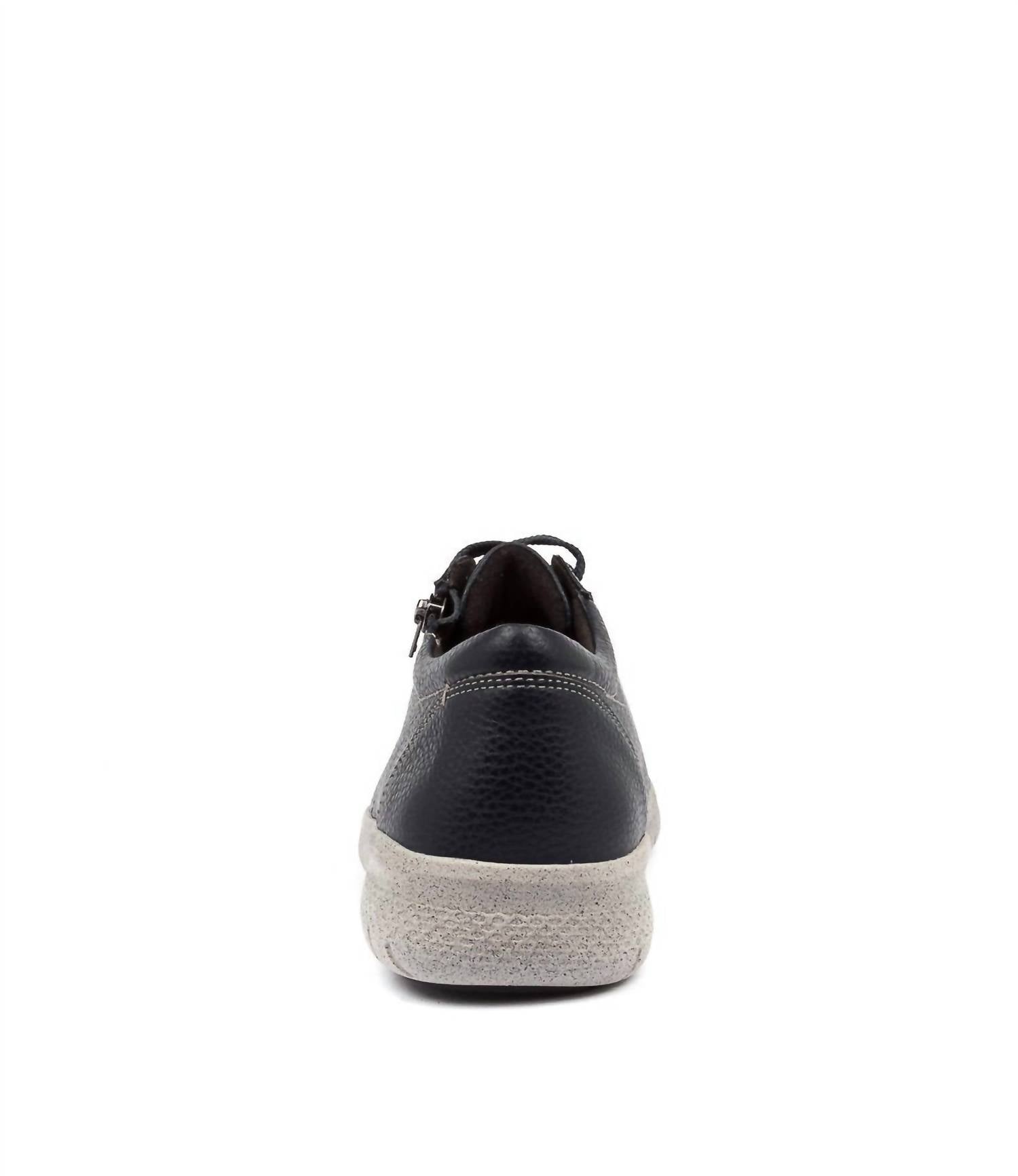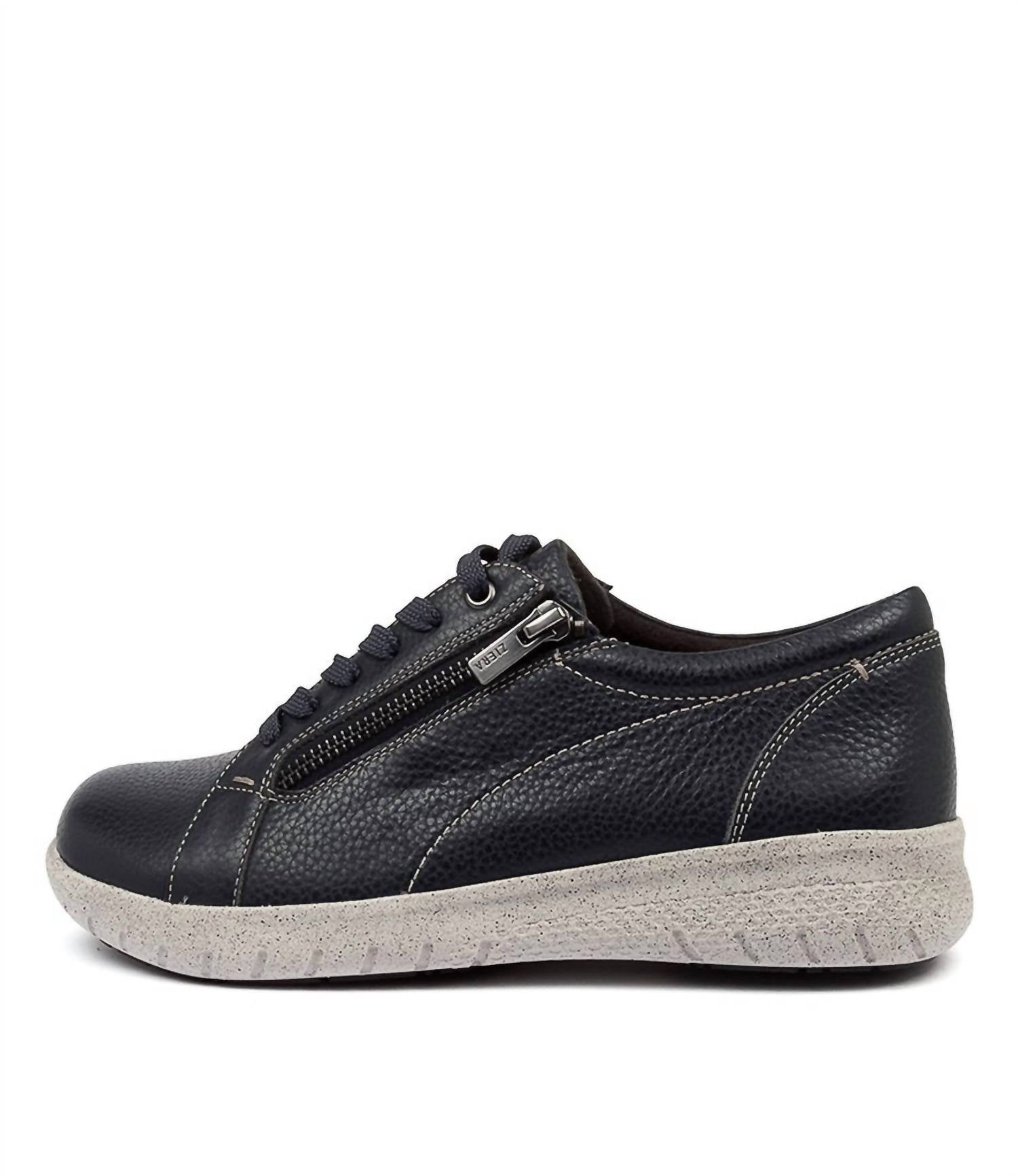 Cute, functional, and comfortable. These sneakers check all the boxes. Step into superior comfort with the Ziera Women's Solar Sneakers, crafted in luxurious ink-colored leather. These sneakers feature a 4 cm heel height and a round toe design, providing an extra wide fit enhanced by included forefoot inserts for adjustable comfort. The sneakers boast a removable Super Support footbed, offering high arch support and a slip-resistant sole for stability. Perfectly tailored for a range of occasions from back to school to casual winter outings.