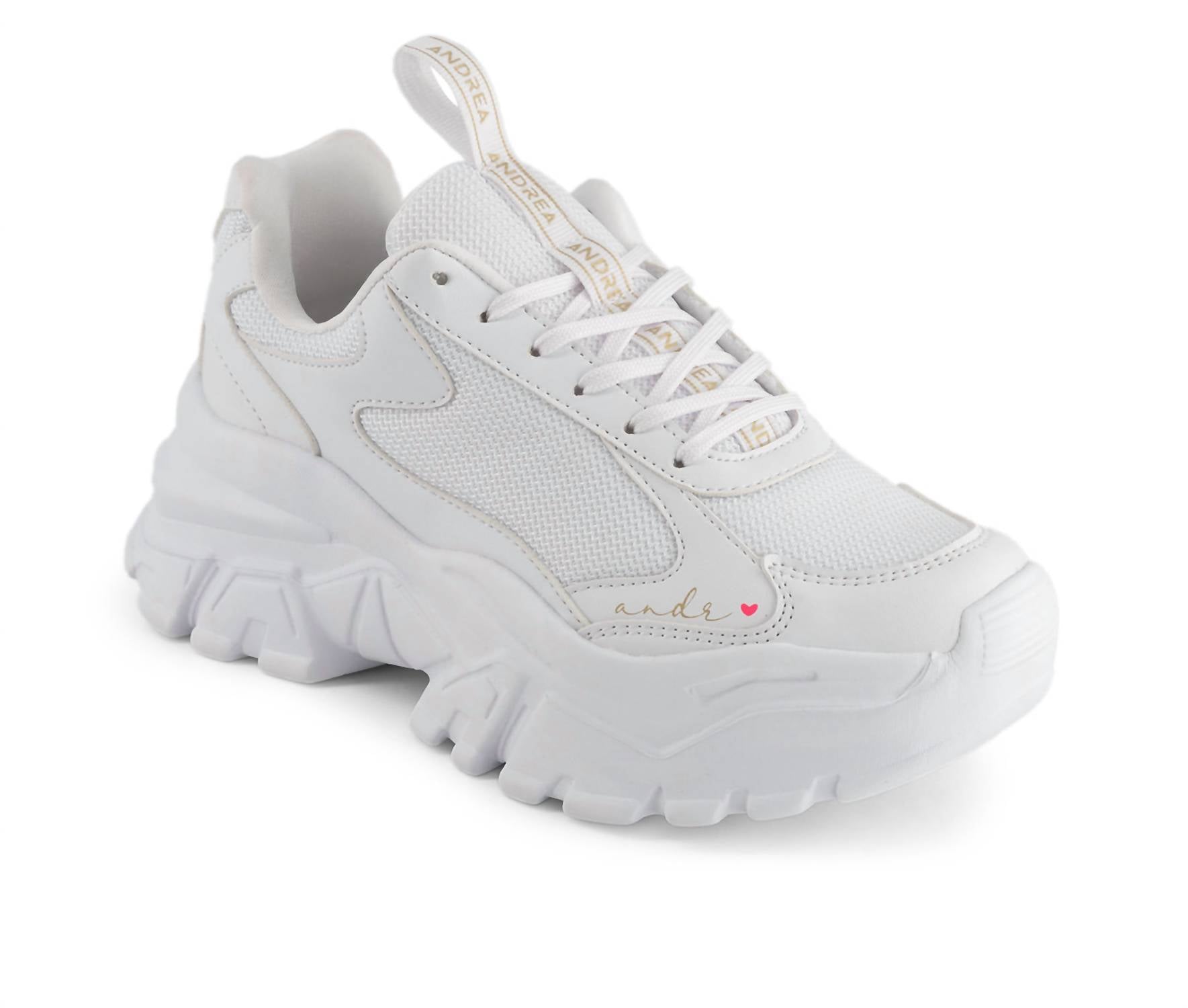 Get your daily steps in with these adorable sneakers. Andrea Women's Chunky Sneakers blend comfort and minimalist style, making them your go-to shoes for any summer outing. Featuring a round toe and flat heel, these sneakers are crafted from soft, durable materials that ensure ultra comfort and support. The super lightweight design ensures that every step feels like you're walking on air. Ideal for any casual occasion or a dinner party, these sneakers bring effortless style by the Andrea brand.