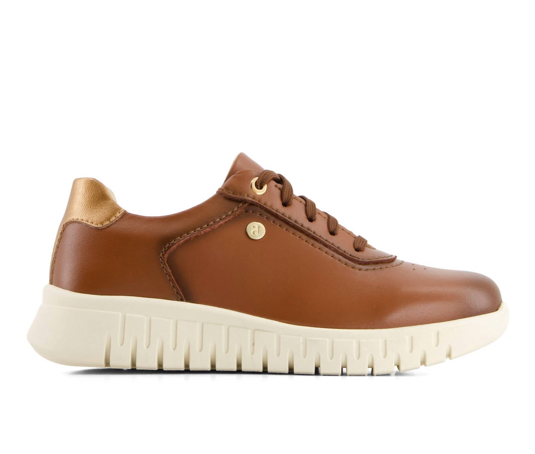 Cute, functional, and comfortable. These sneakers check all the boxes. Step out in style with the Andrea Women's Soft Leather Sneakers, crafted from premium leather in a rich brown hue. These trendy sneakers feature a round toe and a flat heel, making them ideal for travel and streetwear looks. With their foam insole, they provide uncompromising comfort for city adventures or casual brunches. Elevate your summer wardrobe with these versatile kicks, perfect for embracing an urban aesthetic.