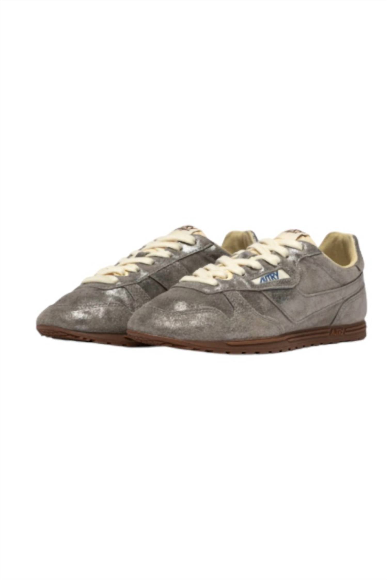 When fashion and function come together seamlessly. Step into an era of adventure with the AUTRY Women’s Windspin Sneakers, exuding the perfect blend of American spirit and Italian style. These sneakers feature an eye-catching sparkle silver suede design, ideal for elevating your streetwear look this spring. Tailored for medium shoe width, they boast a comfortable flat heel, making them perfect for vacation strolls. Embrace the allure of the 1960s lifestyle with this stylish footwear essential.