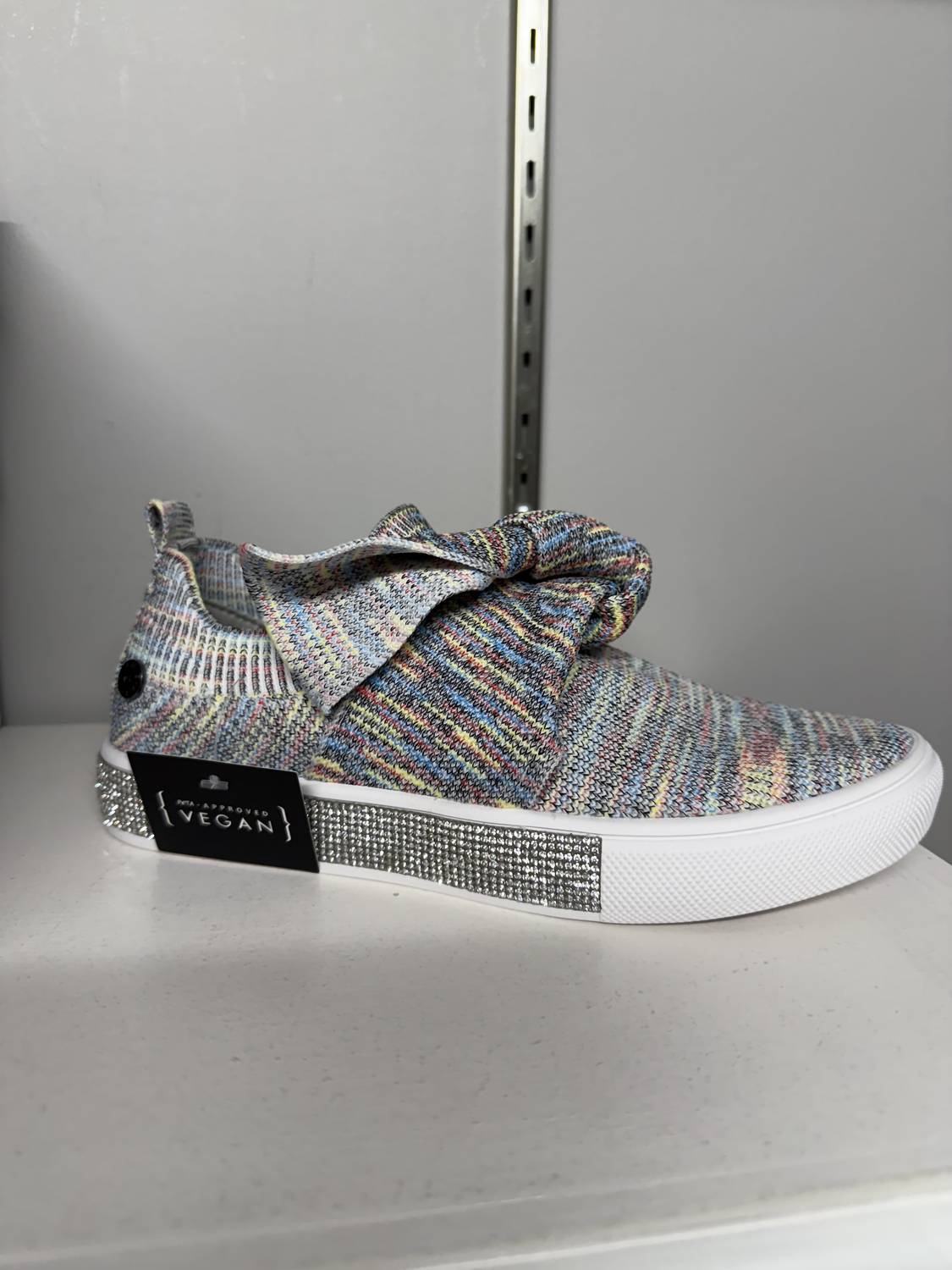 Cute, functional, and comfortable. These sneakers check all the boxes. Discover the Women's Spark Serenity Sneakers by BERNIE MEV, the perfect addition to your spring streetwear collection. Featuring a vibrant Light Rainbow hue and a classic round toe shape, these sneakers are ideal for back-to-school season and Christmas gifting. With their comfortable flat heel design, they offer a blend of style and support for all-day wear. Unleash your fashion-forward side with these light-catching sneakers.