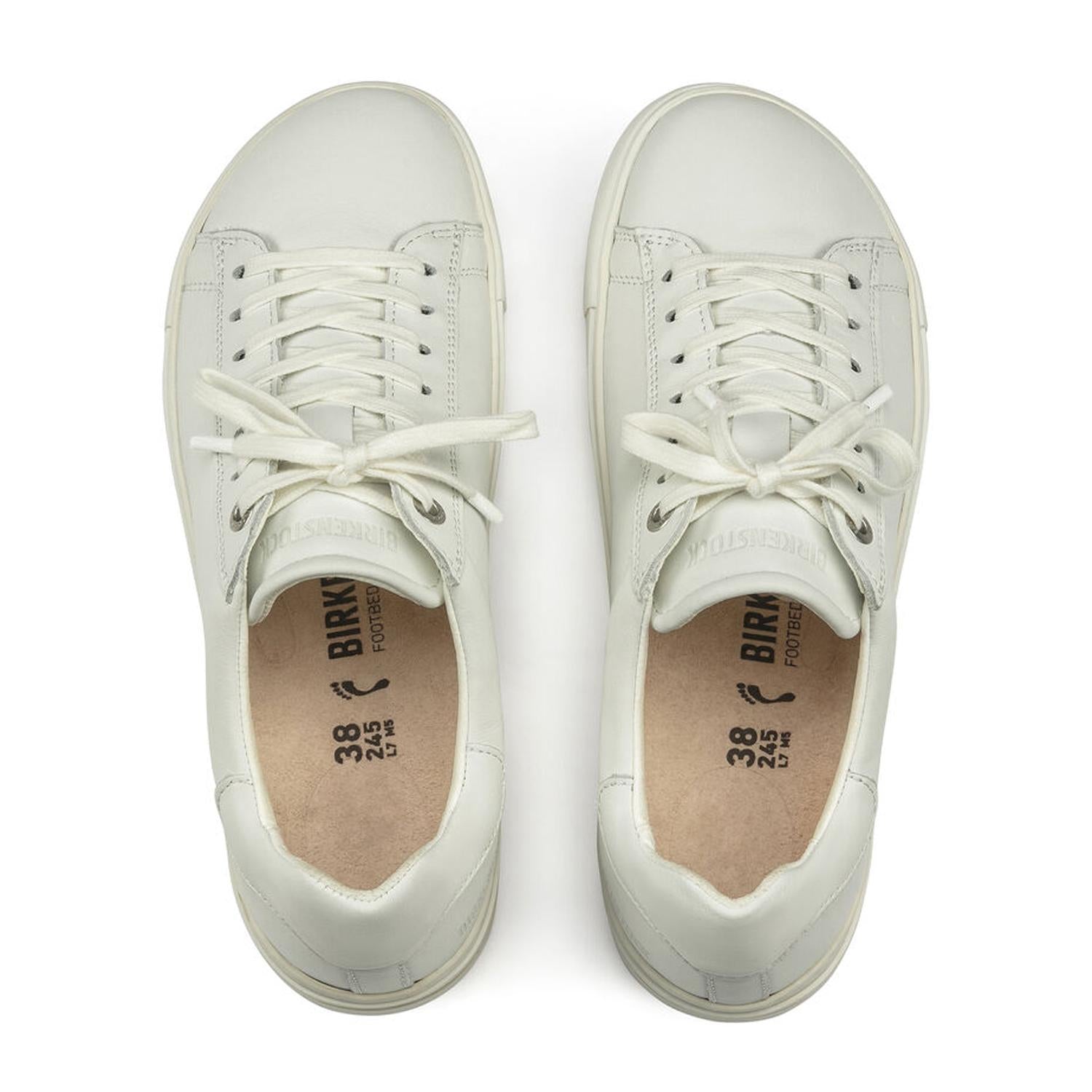 Cute, functional, and comfortable. These sneakers check all the boxes. Discover the BIRKENSTOCK Unisex Bend Sneaker, a versatile footwear option in White Leather designed for both casual and travel occasions. This sneaker, proudly made in Portugal, features a round toe and flat heel, making it perfect for streetwear enthusiasts. The soft, natural leather upper and breathable microfiber lining offer ultimate comfort, while the removable, anatomically shaped cork-latex footbed ensures excellent shock absorption. Sole made of durable rubber for dependable traction, making it an ideal choice for the spring season.