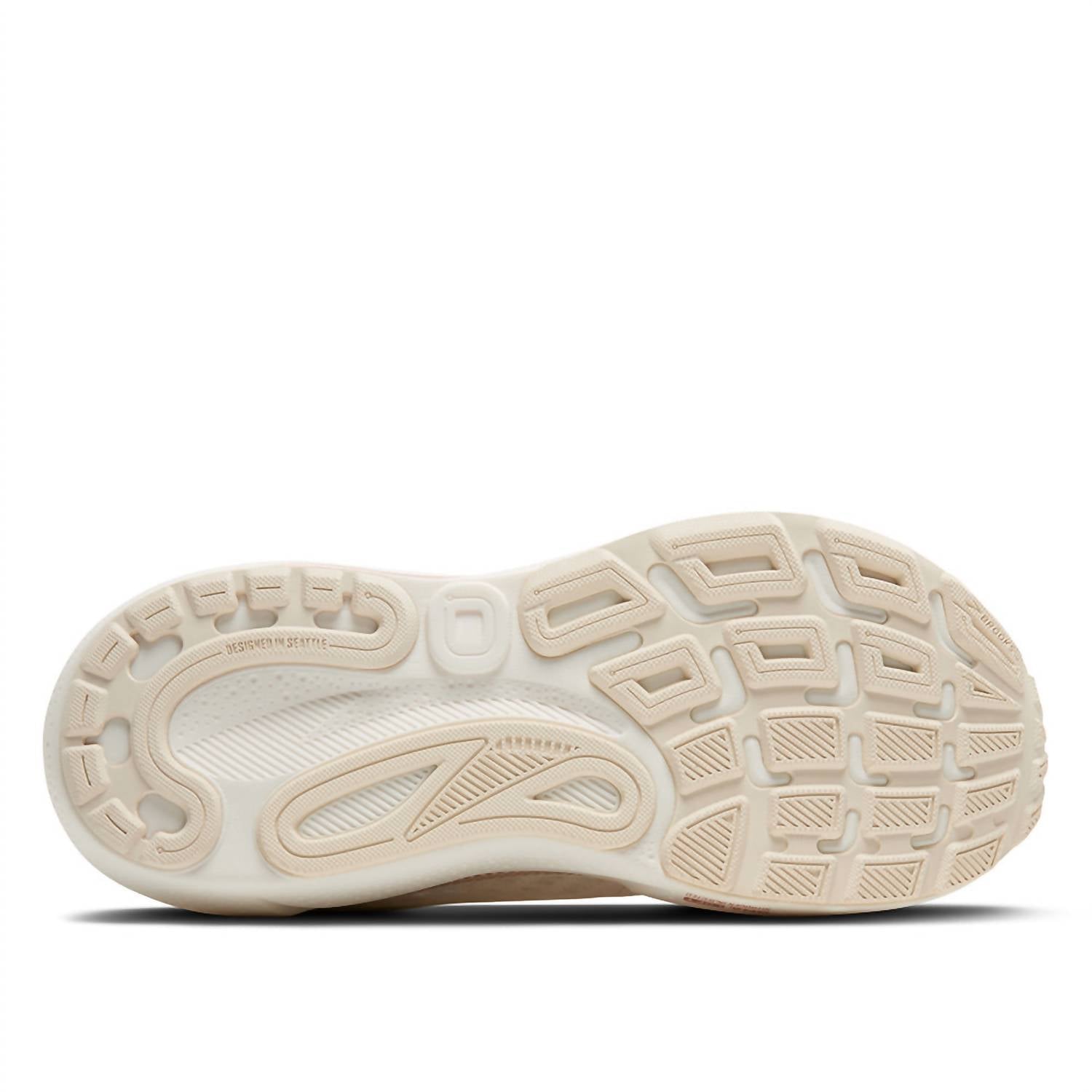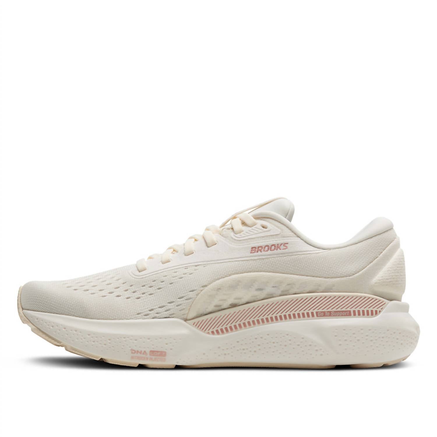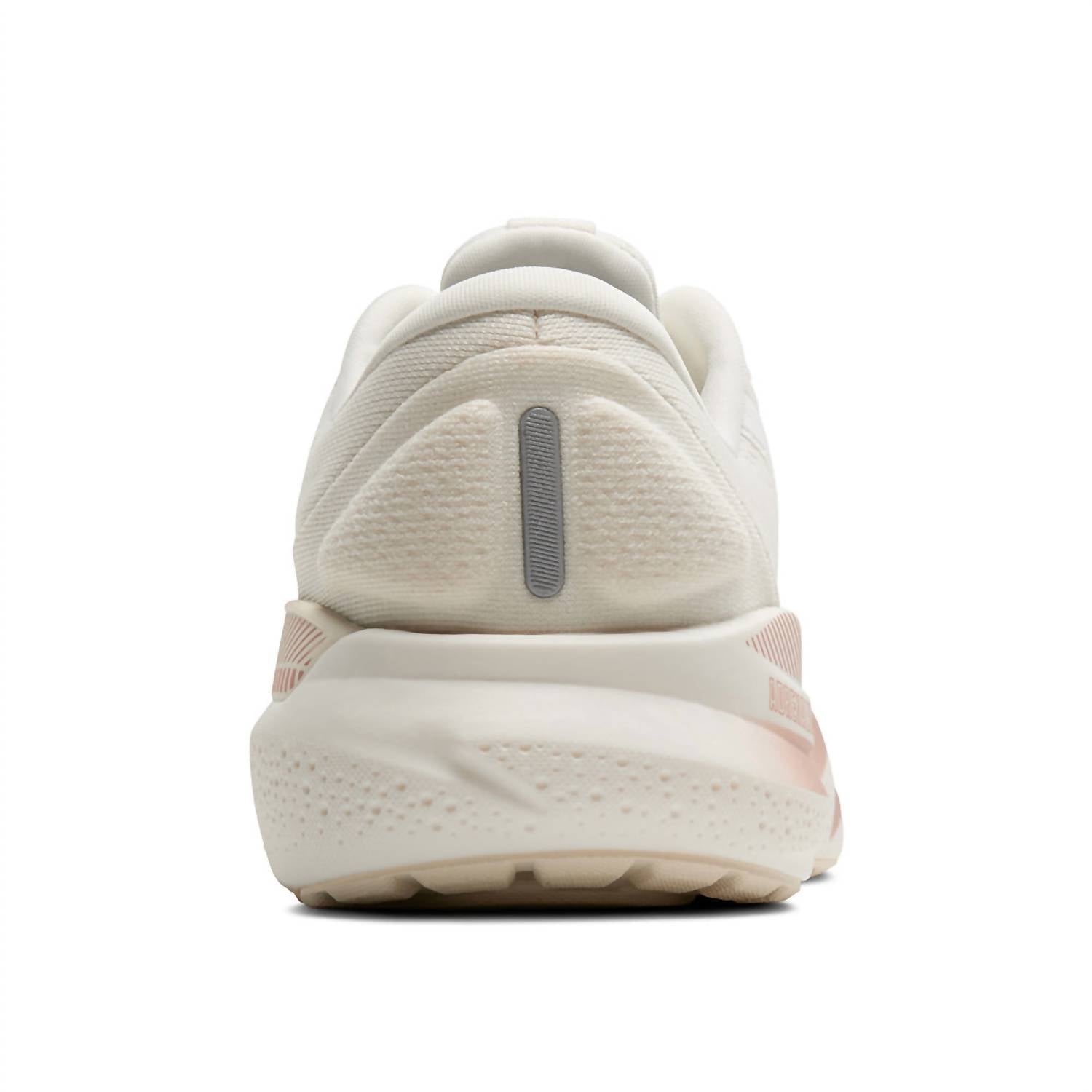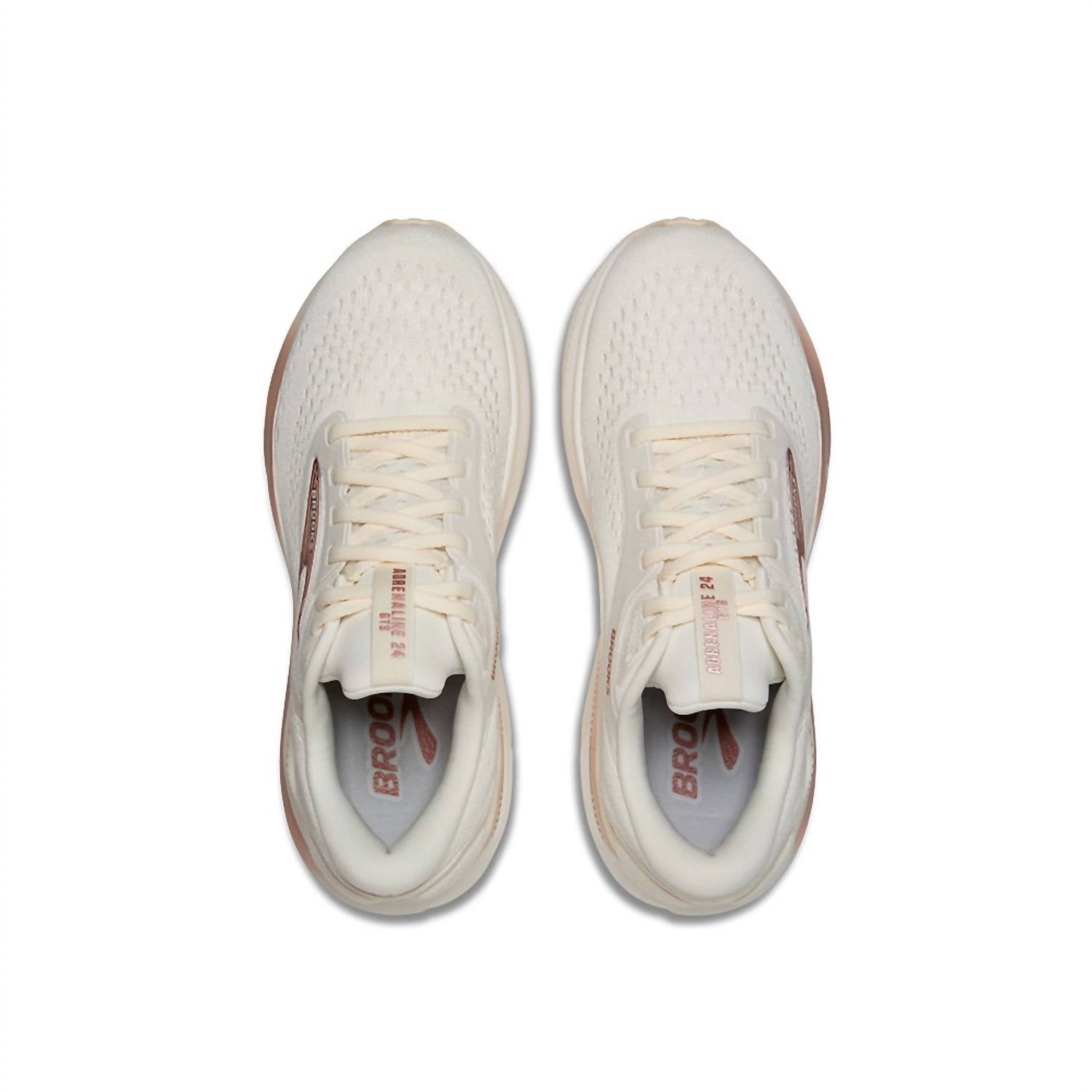 When fashion and function come together seamlessly. Discover the Brooks Women's Adrenaline GTS 24 Running Shoes, expertly designed for road running and walking enthusiasts. These sneakers feature nitrogen-infused cushioning for ultimate lightweight softness and a breathable mesh upper comprising 62.7% recycled materials. Equipped with the trusted GuideRails® support system, they offer secure support to help minimize excess motion. With a midsole drop of 0.5” and a weight of 8.8oz, the coconut, rose gold, and white colorway provides a stylish and sustainable choice for your fitness and athleisure needs.