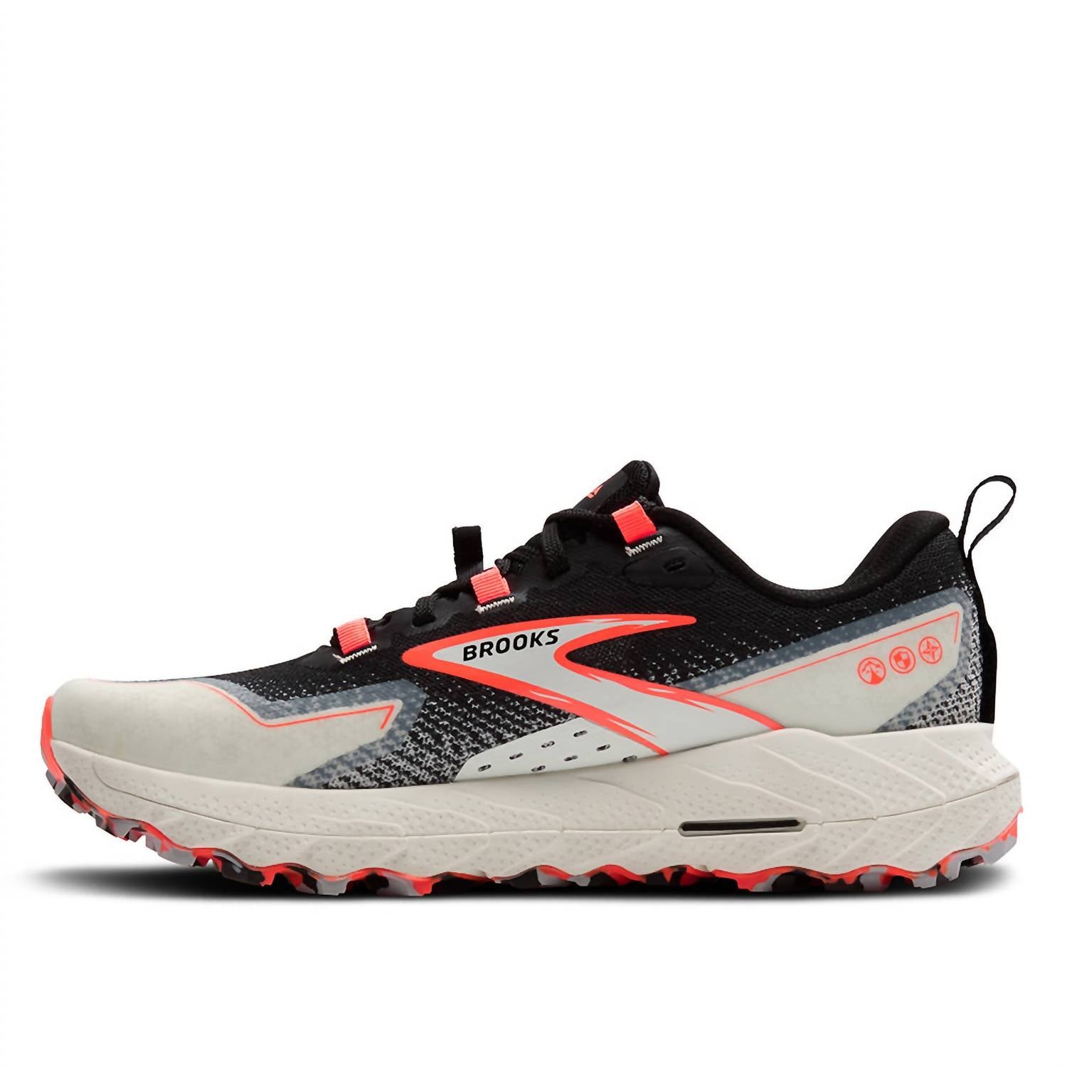 Get your daily steps in with these adorable sneakers. Meet the Women's Cascadia 18 Running Shoes by BROOKS, designed to elevate your workout with athleisure style. These sneakers come in a striking Black/Blue Wash/Flame color scheme, perfect for your summer fitness activities. Featuring a round toe shape, they are an ideal choice for both function and fashion. Whether you're hitting the trails or the gym, these shoes are built to perform.