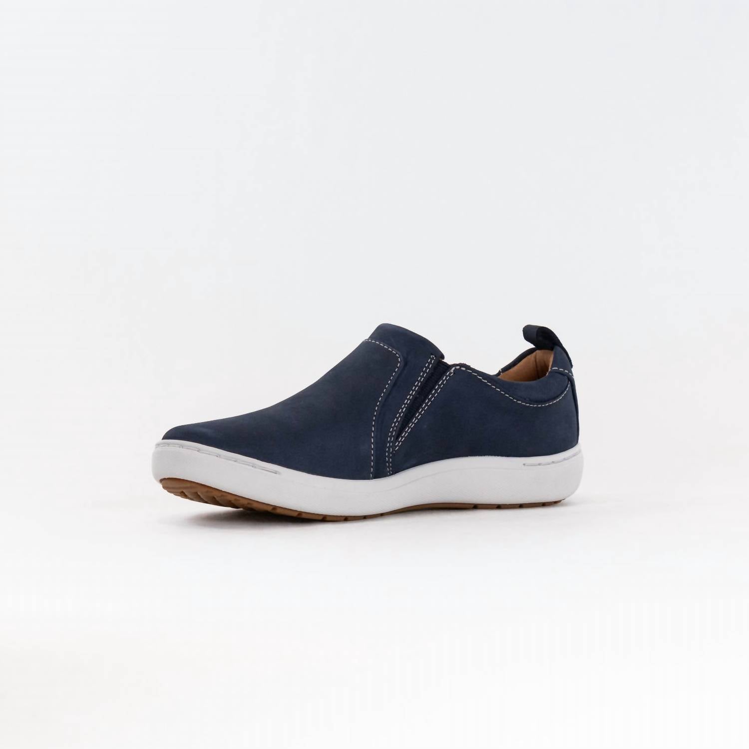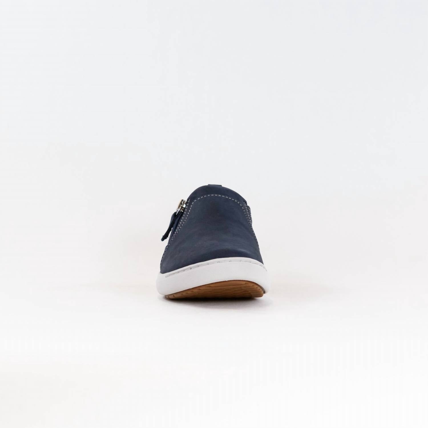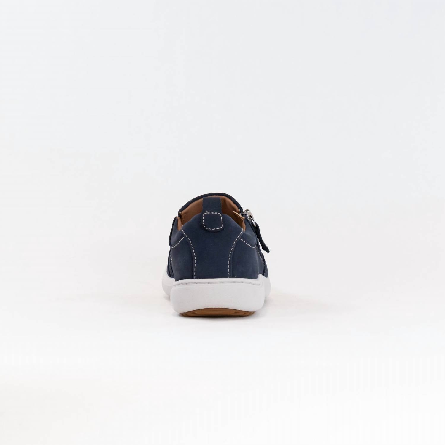 Discover the Women's Nalle Lilac Shoe by Clarks, a stylish addition to your fall wardrobe. Crafted with a durable stone nubuck upper and a breathable leather lining, this casual shoe offers exceptional comfort. It features an easy-access zip for convenience and a molded, recycled-content Contour Cushion footbed that supports each step, combined with a lightweight EVA midsole for shock absorption. The shoe boasts a high-grip, part-recycled rubber sole with a flat heel height of 20mm, perfect for busy days.