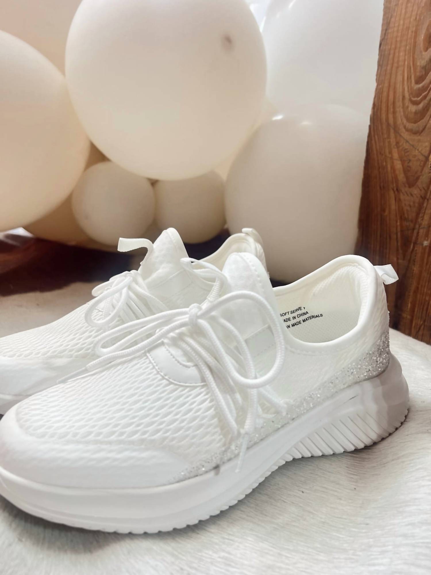 Get your daily steps in with these adorable sneakers. Step into style with the Women's Soft Serve Sneaker by Corkys Footwear in dazzling White Glitter. Perfect for travel and athleisure trends, these sneakers feature a comfortable round toe design for all-day wear. Made in China, they are thoughtfully crafted to keep your spring outings stylish and comfortable.