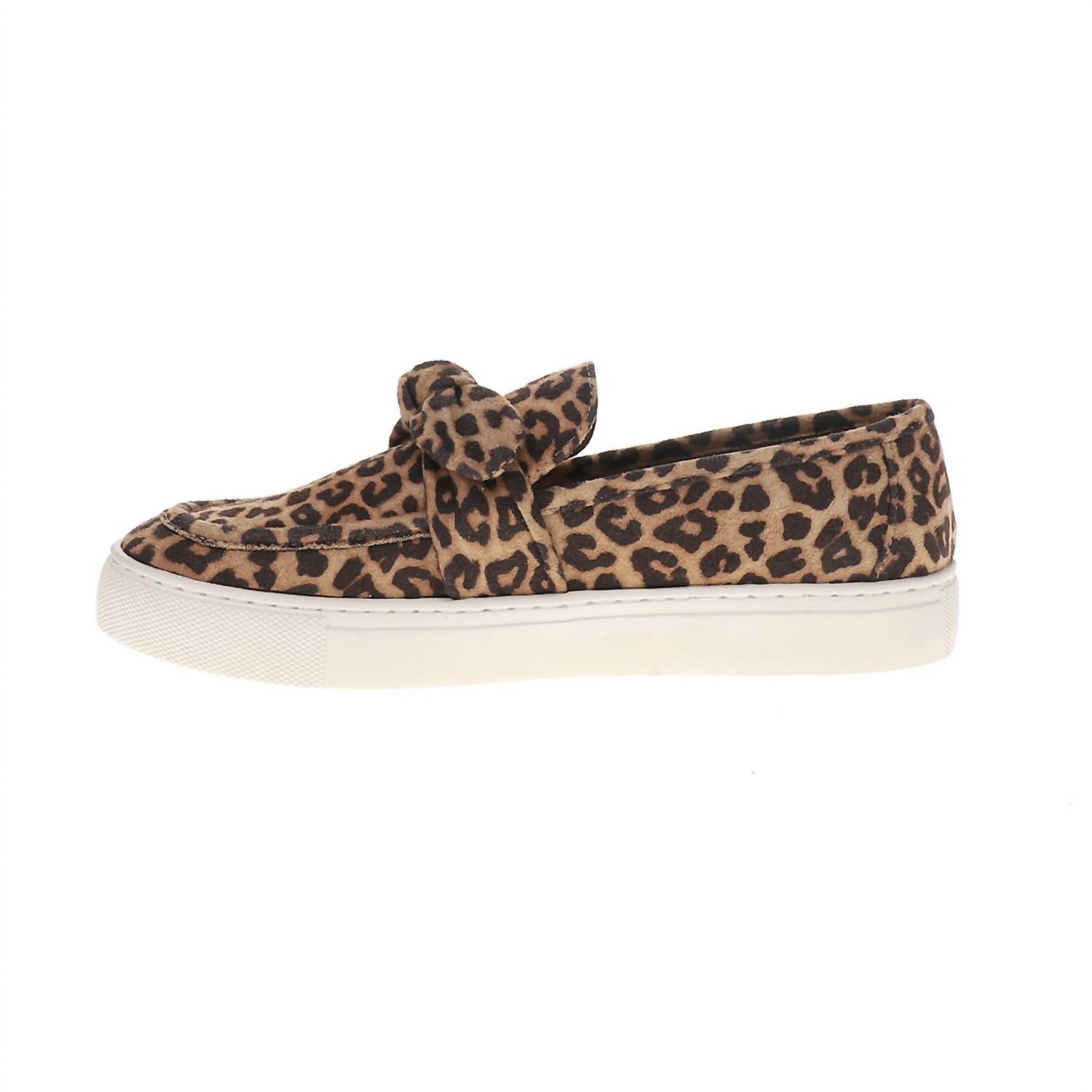 Get your daily steps in with these adorable sneakers. Experience the blend of loafer polish and sneaker comfort with the Women's Why Knot Print Slip On Sneakers by Corkys Footwear. These sneakers are crafted from soft faux suede in a striking leopard print, featuring a charming knotted detail. They offer a slip-on style with a cushioned footbed and a durable rubber outsole for everyday wear. With a round toe and a flat 1" heel, they are perfect for vacation or casual outings.