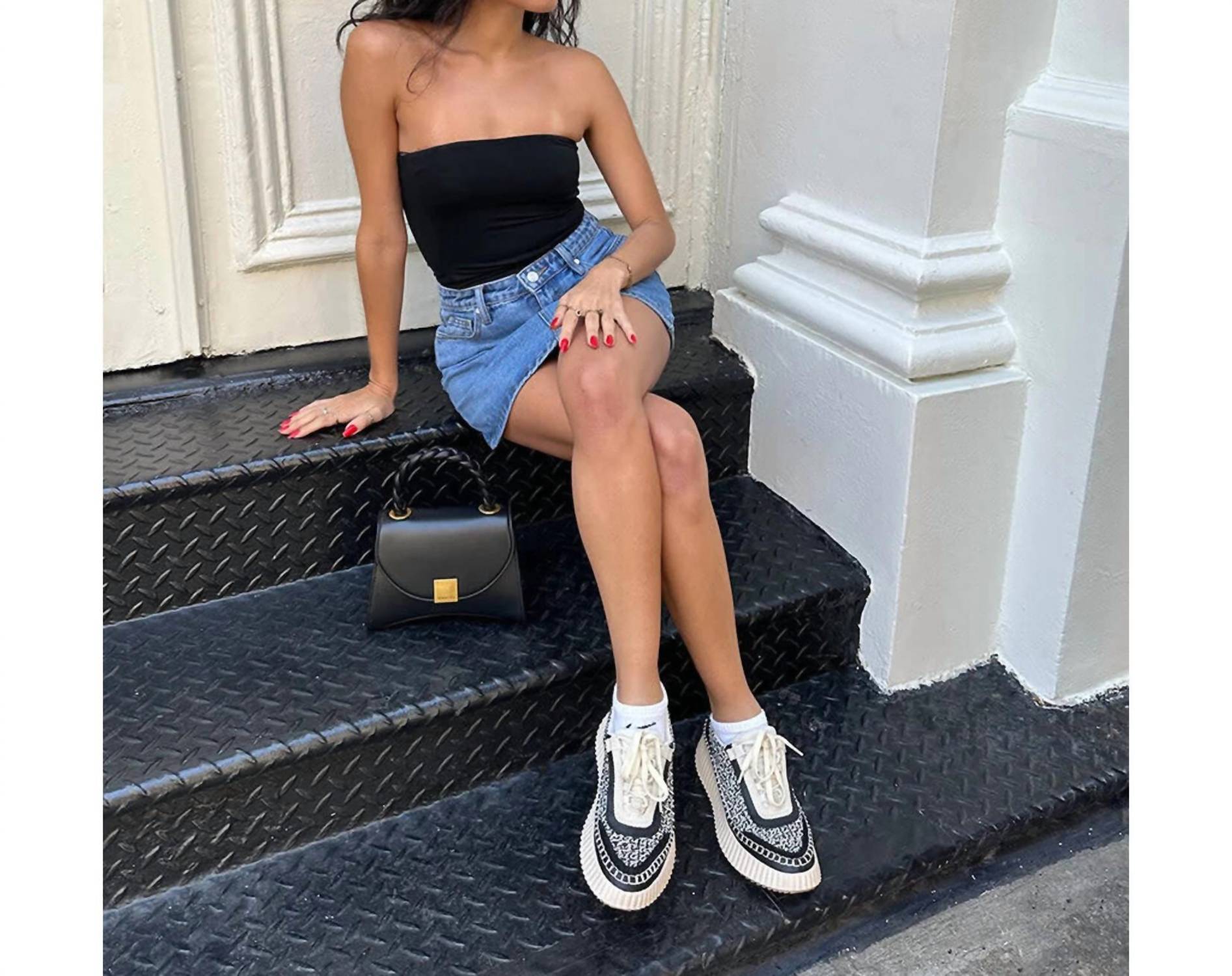 Cute, functional, and comfortable. These sneakers check all the boxes. The elevated, on-the-go sneaker. DOLEN pairs a cool, modern platform sole with a sporty lace-up knit, creating the perfect go-anywhere, do-anything look. Comfy and current, we can't wait to hit the streets in these. Size up.