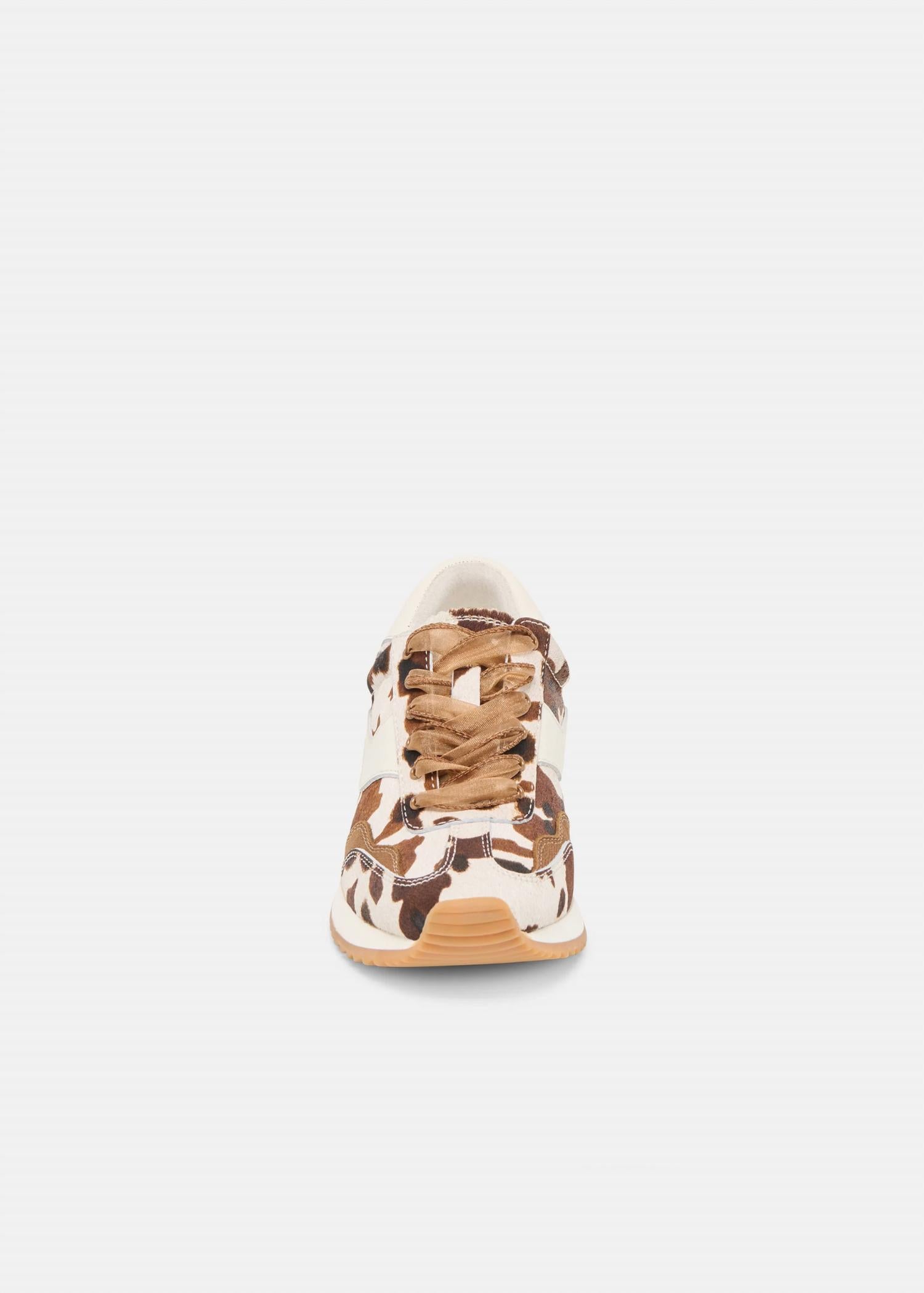 When fashion and function come together seamlessly. Discover the Women's B.ntcd Sneakers by Dolce Vita, designed for the ultimate combination of style and comfort. These sneakers boast a round toe with a flat heel under 1", making them perfect for your streetwear adventures. Featuring a unique Cocoa Taurus Calf Hair and Leather upper, coupled with a recycled synthetic outsole, they embody sustainability without compromising on style. Additional details include a recycled textile lining, synthetic sock, and two pairs of laces (Polyester and Curly Organza). Imported quality ensures durability for your travel occasions this spring.