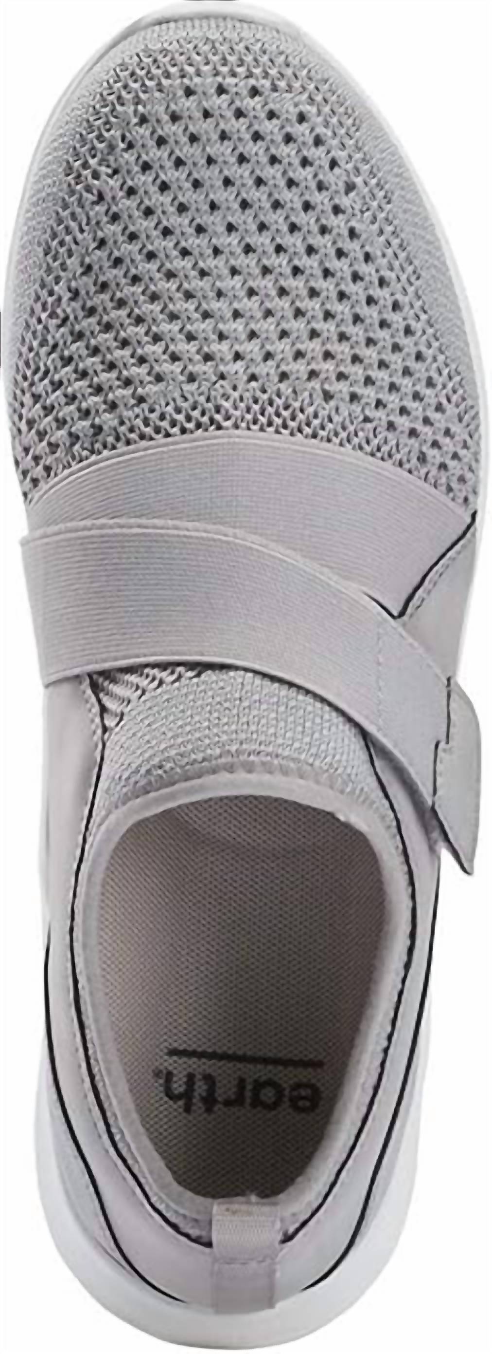 When fashion and function come together seamlessly. Experience exceptional comfort with the Women's Scenic Valiant Sneaker by EARTH, crafted in Grey Multi for a versatile look. This lightweight sneaker features a fly-knit upper and lining made from 100% recycled PET bottles and recycled thermoplastic yarns. The shoe boasts an adjustable strap with a hook-and-loop closure and a round toe shape, perfect for everyday wear, including workwear occasions. Made with textile and synthetic materials and sporting a low heel height of 1 1/4"-2", these sneakers are ideal for summer outings. Closure: Hook-and-loop. Imported.