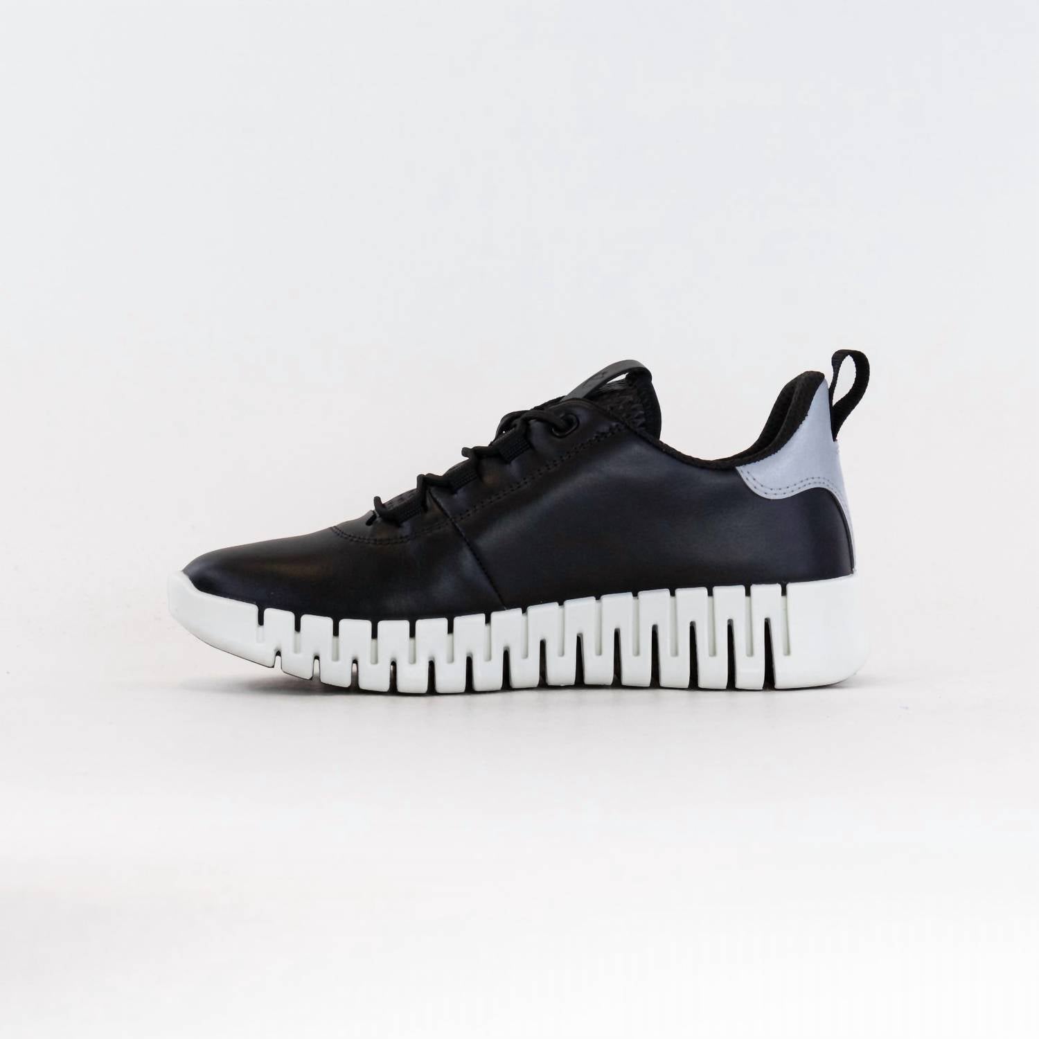 When fashion and function come together seamlessly. Discover comfort and style with the ECCO Women's Gruuv Sneaker, expertly crafted from buttery soft Nappa leather with reflective trimming details for a modern touch. These sneakers feature a dynamic two-way flex rubber sole, facilitating effortless foot movement and grip on any surface. Designed with elastic shoelaces and smart external loops, they ensure a secure, adjustable fit on-the-go. The removable dual-fit comfort foam insoles offer customizable width, covered in breathable textile for enhanced comfort.