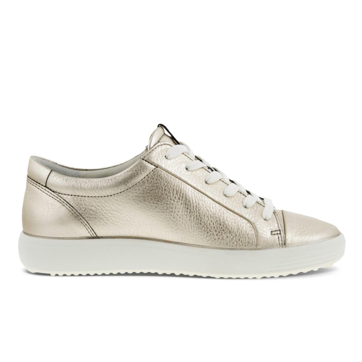 Get your daily steps in with these adorable sneakers. Discover the pure elegance and comfort of the Women's Soft 7 Mono Sneaker by ECCO. Showcasing ECCO's commitment to quality, these sneakers are crafted from luxurious full-grain and nubuck leather in an understated Pure White Gold. The versatile round toe and flat heel design make it perfect for spring streetwear or your next vacation adventure. Featuring a direct-injected two-component PU/TPU outsole and a removable leather-covered inlay sole with ECFSâ„¢, this sneaker ensures a sublime fit and a comfortable inner climate.