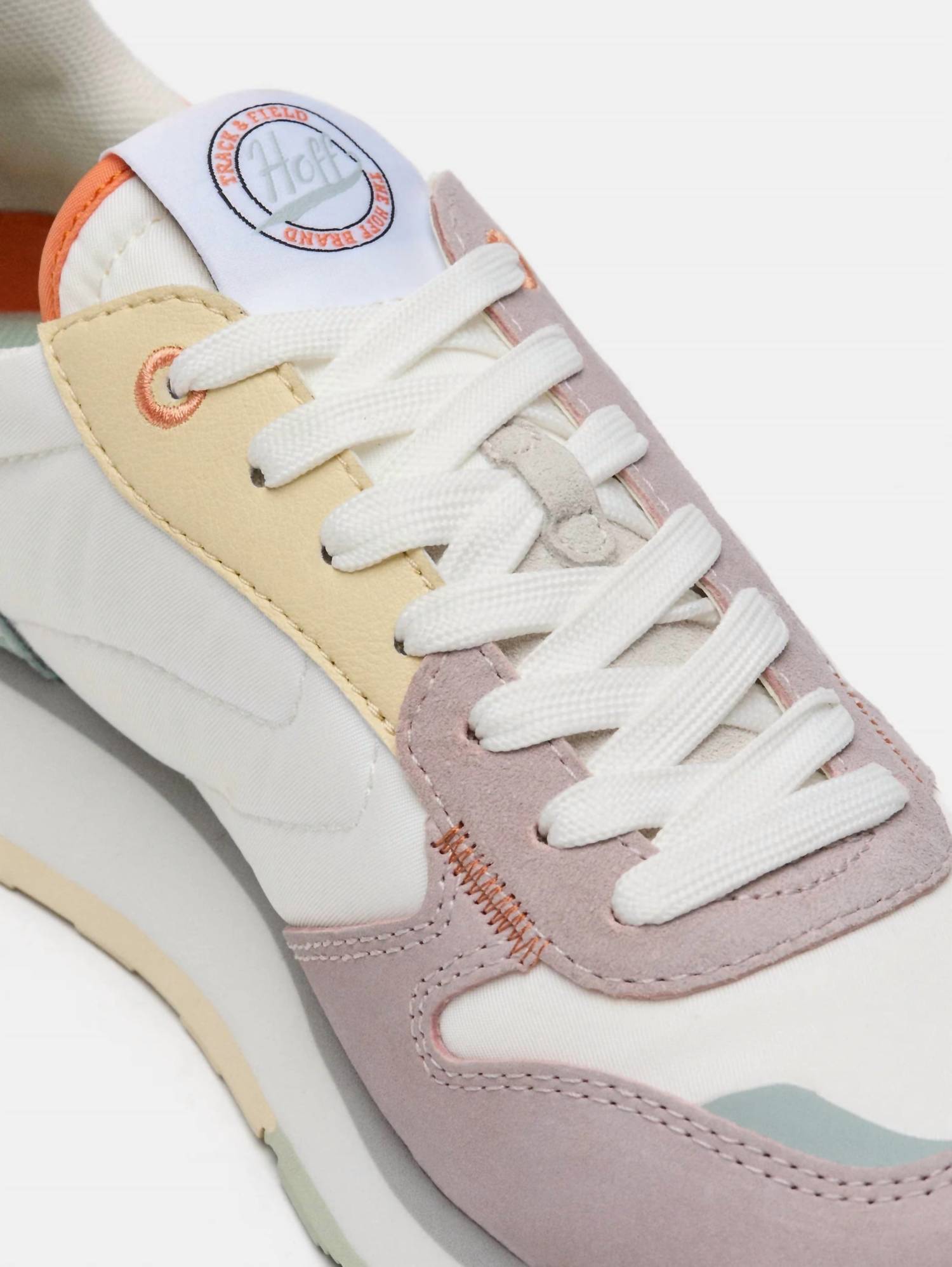 When fashion and function come together seamlessly. Step out in style with the HOFF Women's Nemea Shoe, a modern sneaker designed in a pristine white hue. Crafted from a blend of leather and textile, these shoes offer both durability and a sleek aesthetic. The 3 cm high flat heel, embellished with a logo, provides a subtle lift while prioritizing comfort, thanks to the removable memory foam insole. Ideal for the Spring season, these sneakers also feature a rubber sole for reliable traction and added brand detailing on the tongue and heel.