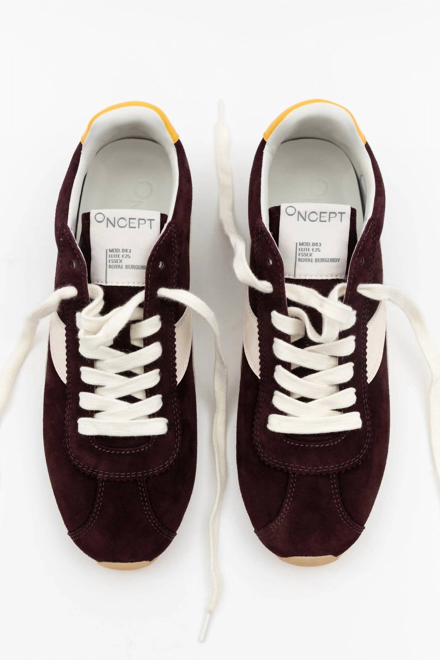Get your daily steps in with these adorable sneakers. Discover the Women's Essex Sneaker by Oncept, a ballet flat-inspired sneaker perfect for streetwear and fitness occasions. Crafted from luxurious soft suede in a sand hue, this lightweight and flexible design features a low profile with a round toe shape and flat heel. The sneaker has a soft Tencel-based twill lining, leather sock, and molded footbed made with recycled materials, complemented by recycled bottoms. Care instructions include using a waterproof suede protector and cleaning the outsole with a soft cloth and water; machine washing is not recommended.