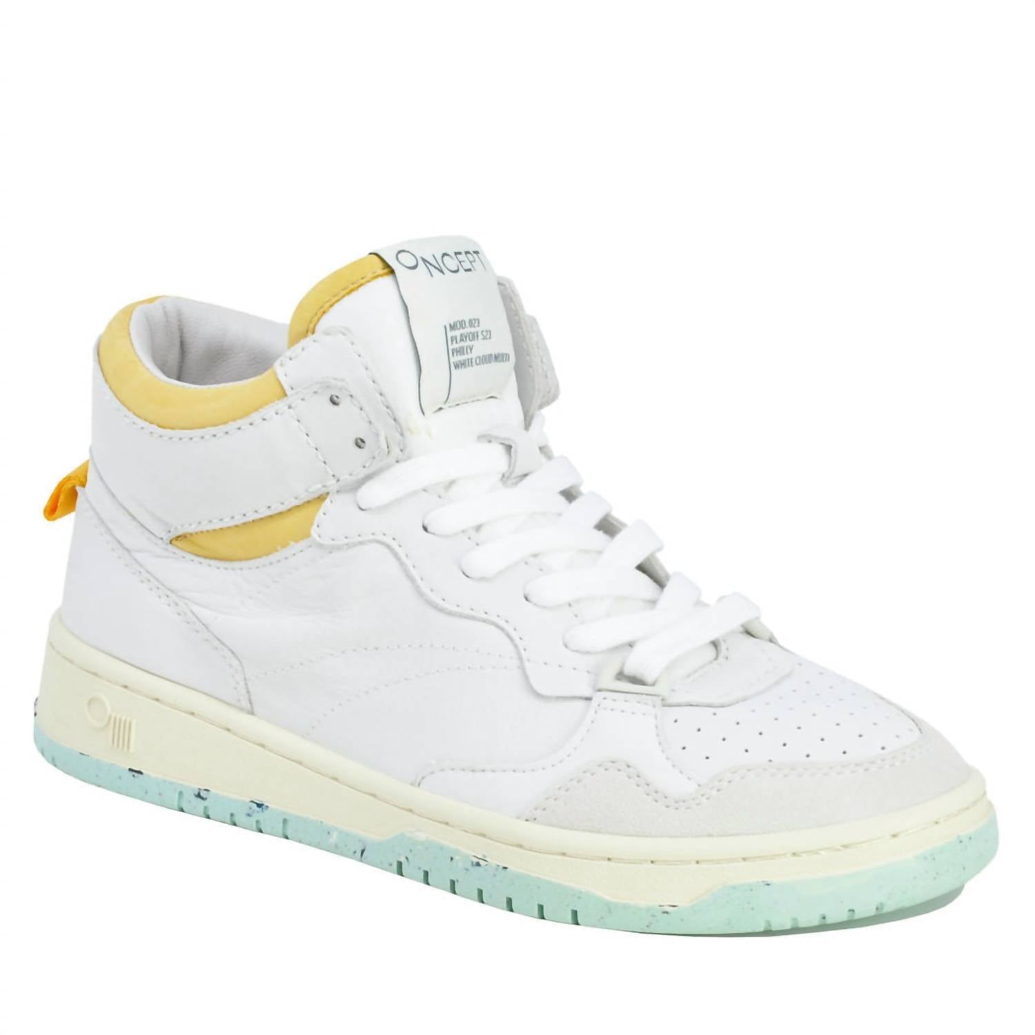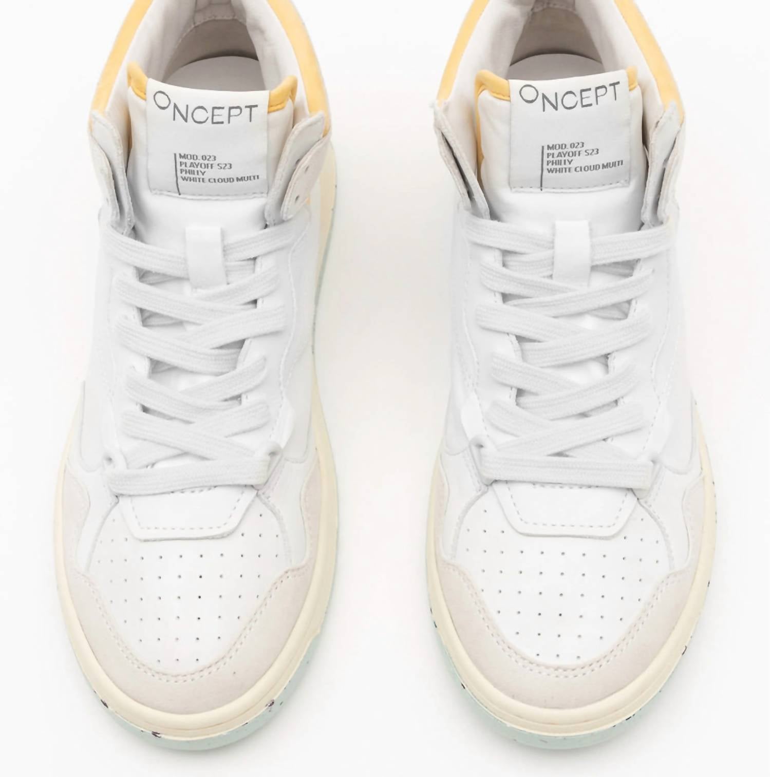Cute, functional, and comfortable. These sneakers check all the boxes. Introducing the Women's Philly Sneaker by Oncept, a stylish choice for the modern woman that seamlessly complements both casual and dressy looks. These mid-top sneakers feature a lace-up style and a bio-density molded foam footbed for superior comfort and support. Crafted with a soft calf leather upper, chrome-free suede, and organic cotton laces, they are lined with Tencel twill for that extra touch of luxury. True to size, these sneakers in White Cloud Multi embody a chic athleisure trend perfect for your spring essentials, especially for those holiday parties.